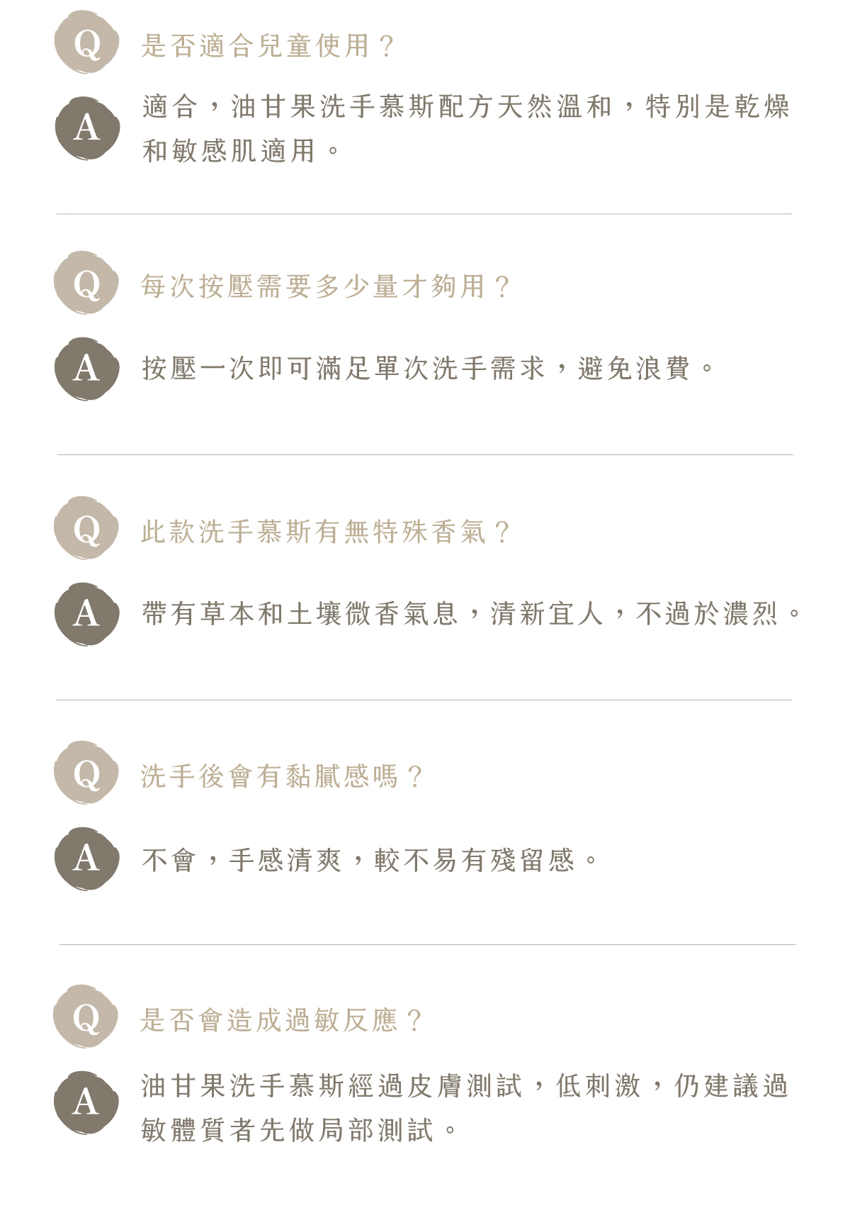 ‧ 敏感性肌膚適用|追求綠色天然成分,溫和洗手與抗菌,慕斯泡沫豐盈好沖洗,洗後不乾澀、不咬手。