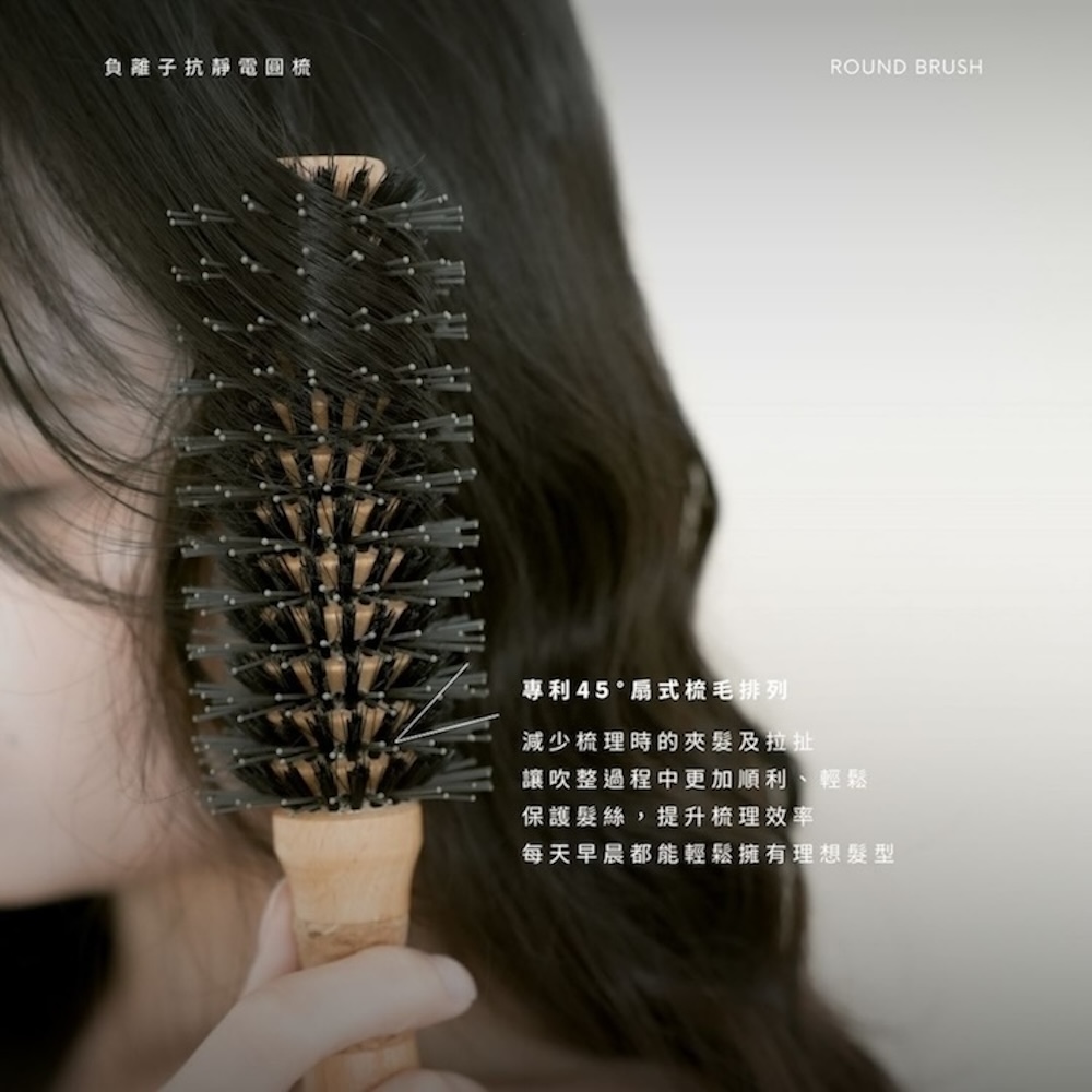 #專利45°扇式梳毛減少梳理時夾髮及拉扯以保護髮絲,梳理造型時更容易
