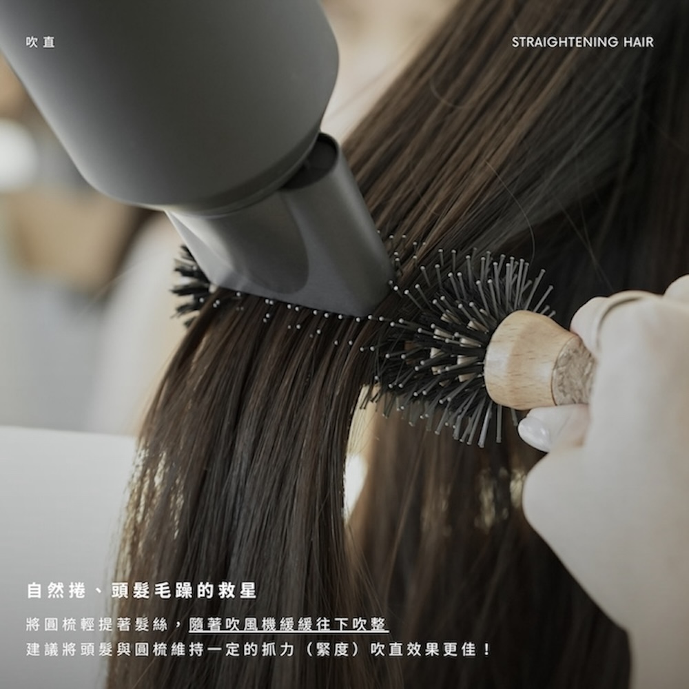 搭配吹風機梳理吹整使髮面更加柔順亮麗
