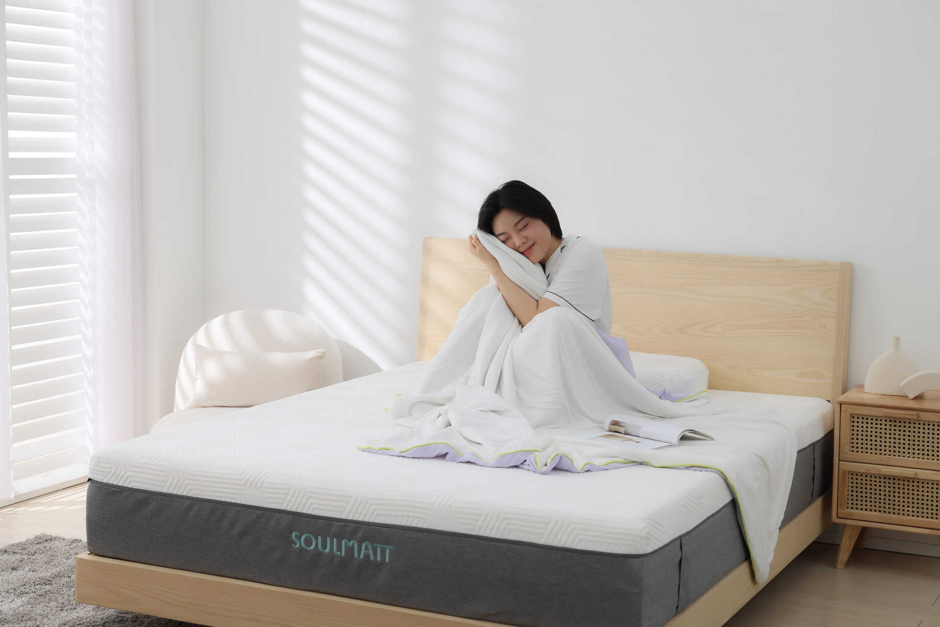 SOULMATT 兩用茸茸被,是一款強調一秒換季、集涼感與溫暖於一身的命定小被被。採用會呼吸的Airwash涼洗綿,提供近100%極致透氣的清爽舒眠感。雙面設計冬暖夏涼,可機洗、抗蟎抗菌防霉,是您應對季節交替的理想選擇。