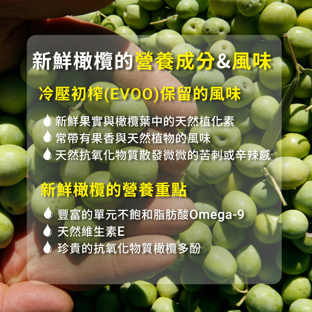 商品品名:特級初榨橄欖油 單一品種HOJIBLA500ml商品重(容)量:500ml內容物成分(如含有豬、牛成分請加註國別):橄欖油發煙點:180度使用建議:可直接食用、涼拌、沙拉、煎、炒、煮、蒸保存期限:24個月原產地(國):西班牙製造廠商或國內負責廠商名稱:可營國際有限公司製造廠商或國內負責廠商地址:新北市板橋區中山路二段443巷77號15樓製造廠商或國內負責廠商電話:02-2964-3277以消費者收受日算起,至少距有效日期前?日以上:18011.食品業者登錄字號:A-128072829-00000-612.投保產品責任險字號:2525AML0007505