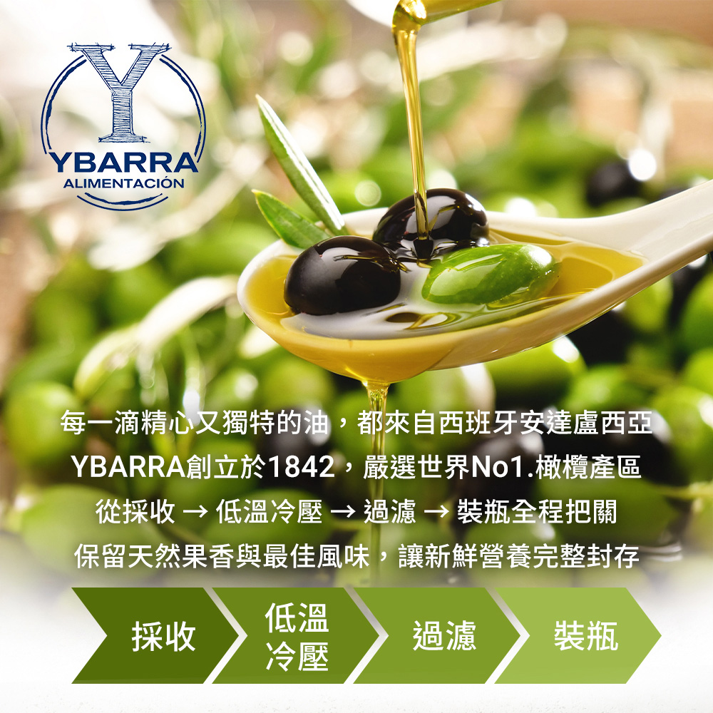 來自西班牙 YBARRA 益百萊的特級初榨橄欖油 單一品種HOJIBLANCA 500ml容量,適合日常烹飪與中高溫料理,可直接食用、涼拌、沙拉、煎、炒、煮、蒸都合適也是煮飯做菜的首選好幫手。