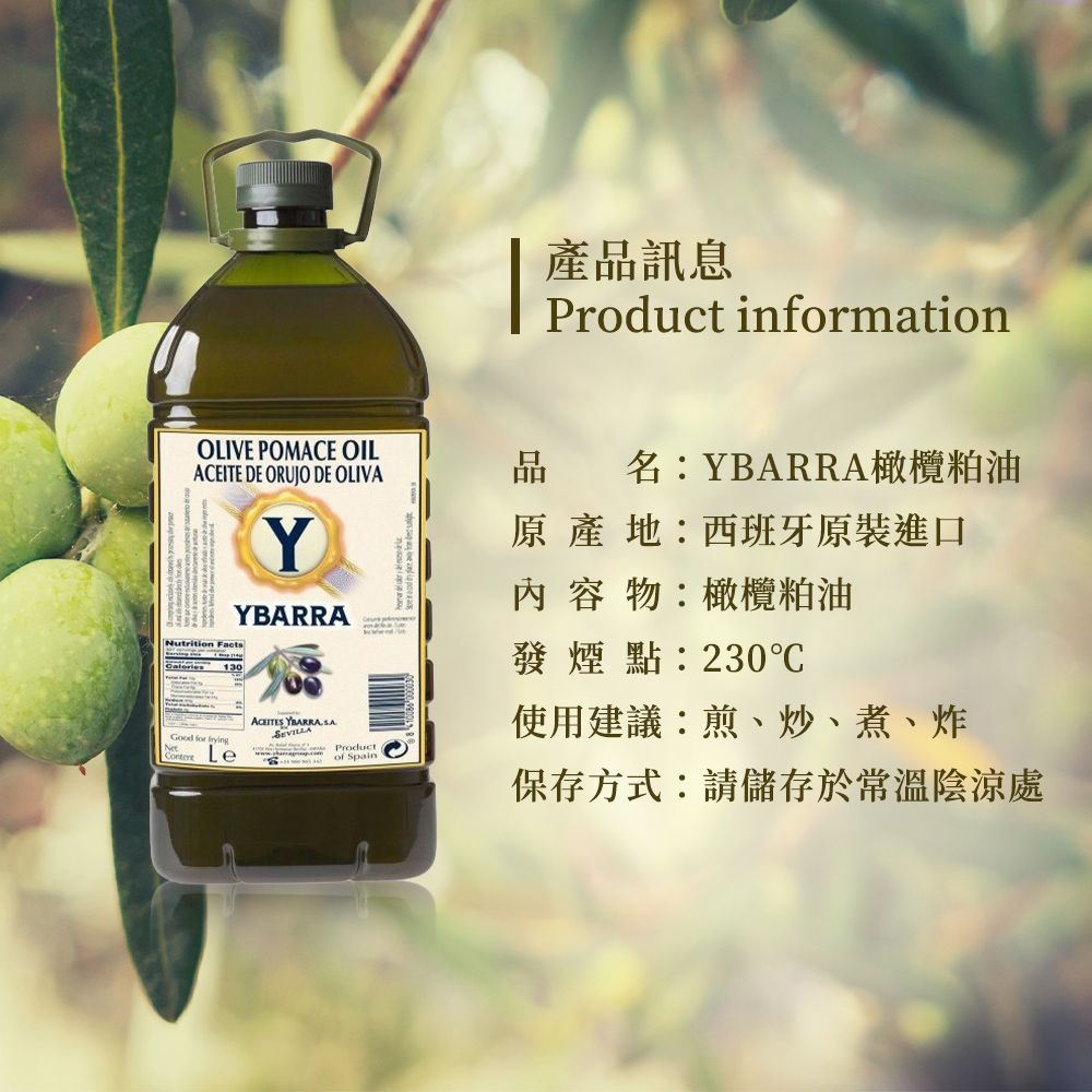 來自西班牙 YBARRA 益百萊的橄欖粕油(3000ml容量,適合日常烹飪與中高溫料理,煎、炒、煮、蒸、炸 都合適也是煮飯做菜的首選好幫手。