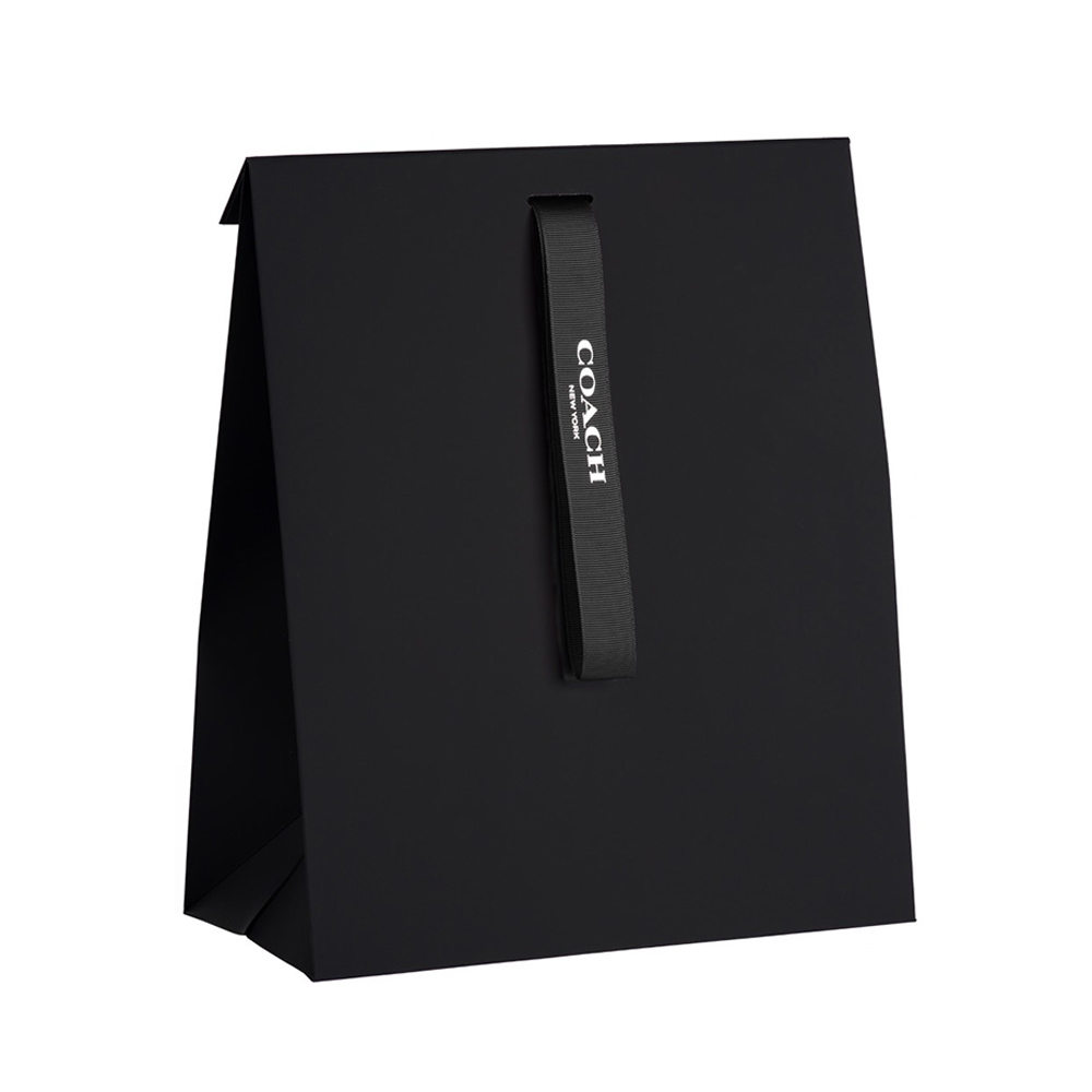 外盒包裝延續COACH經典的鵝卵石顆粒皮革設計,以大膽黑色襯托金色字樣,一樣有著COACH標誌性的馬車,象徵著COACH的精湛工藝。