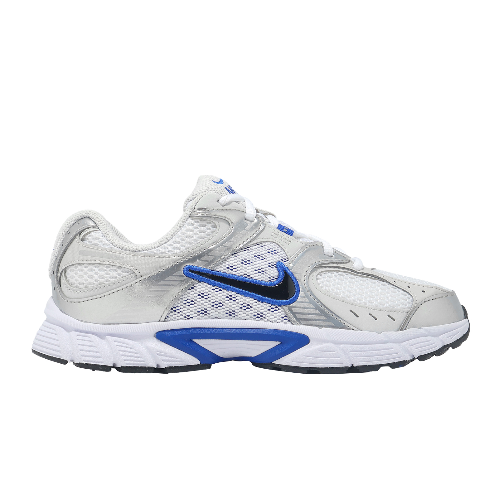 品牌: NIKE型號: HQ6411-101品名: V5 RNR GS版型: 腳寬者建議大半號* V5 RNR 以經典的 Y2K 為設計靈感,擁有厚實而輕巧的泡沫中底,搭配 3D Swoosh 標誌提升質感。