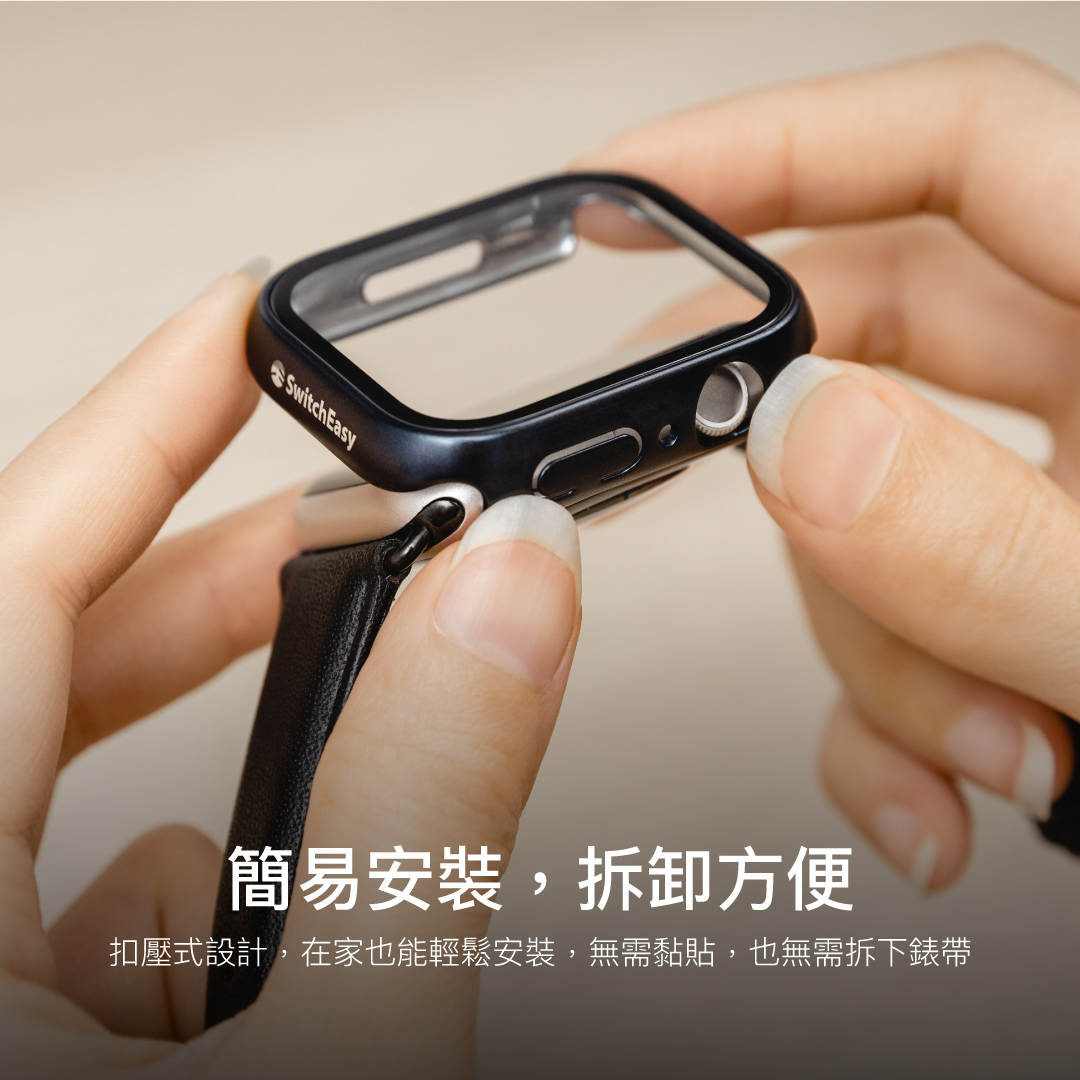 扣壓式設計,在家也能輕鬆安裝,無需黏貼,也無需拆下錶帶