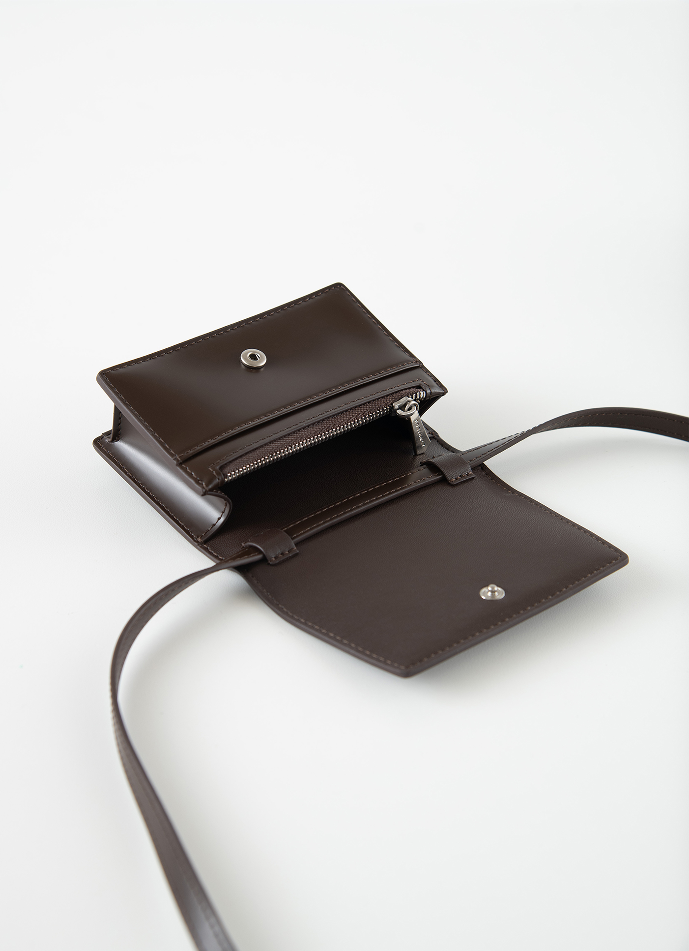 迷你包/短夾設計,無法置入皮夾與手機平滑柔順觸感,手感輕盈ROBINMAY 質感字母 LOGO 標誌簡易收納空間,票卡零錢精巧收納隨附斜背帶,搭配使用可變 WOC 包