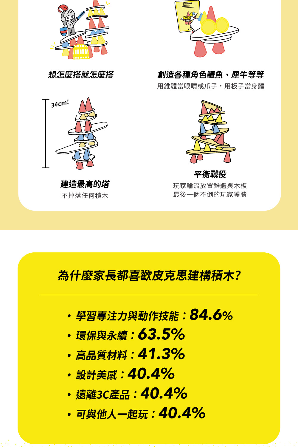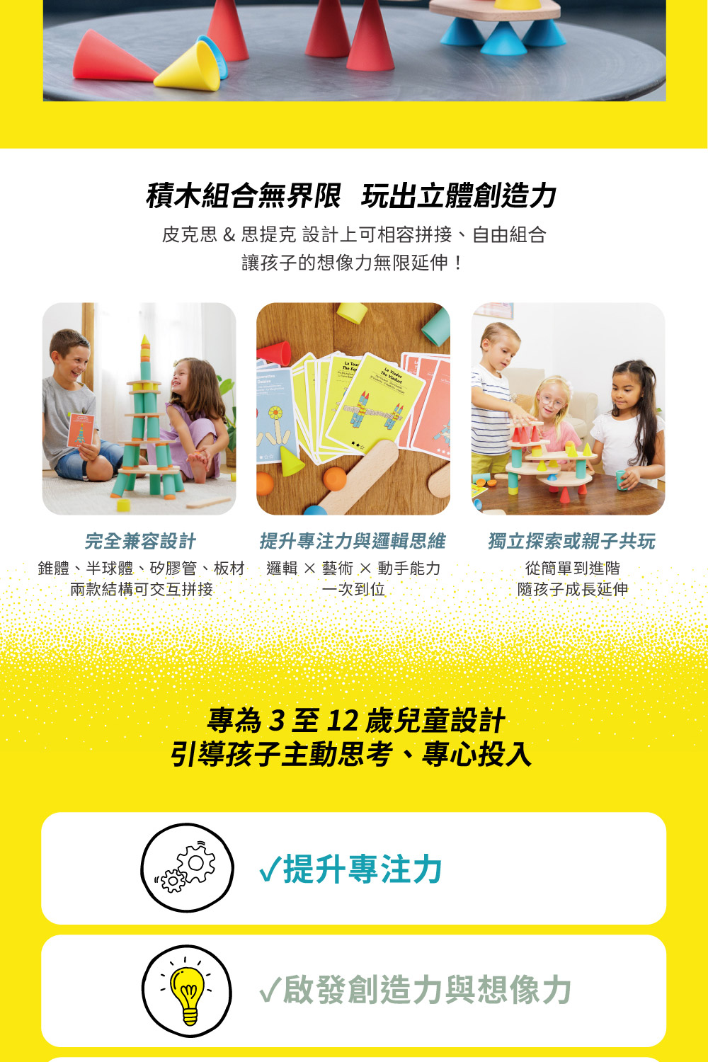 榮獲多項大獎的教育建構玩具。矽膠錐可牢牢固定木板,讓孩子自由創造高難度結構,促進專注力、精細動作及創造力。玩出無限可能,讓孩子在遊戲中培養問題解決和決策能力。