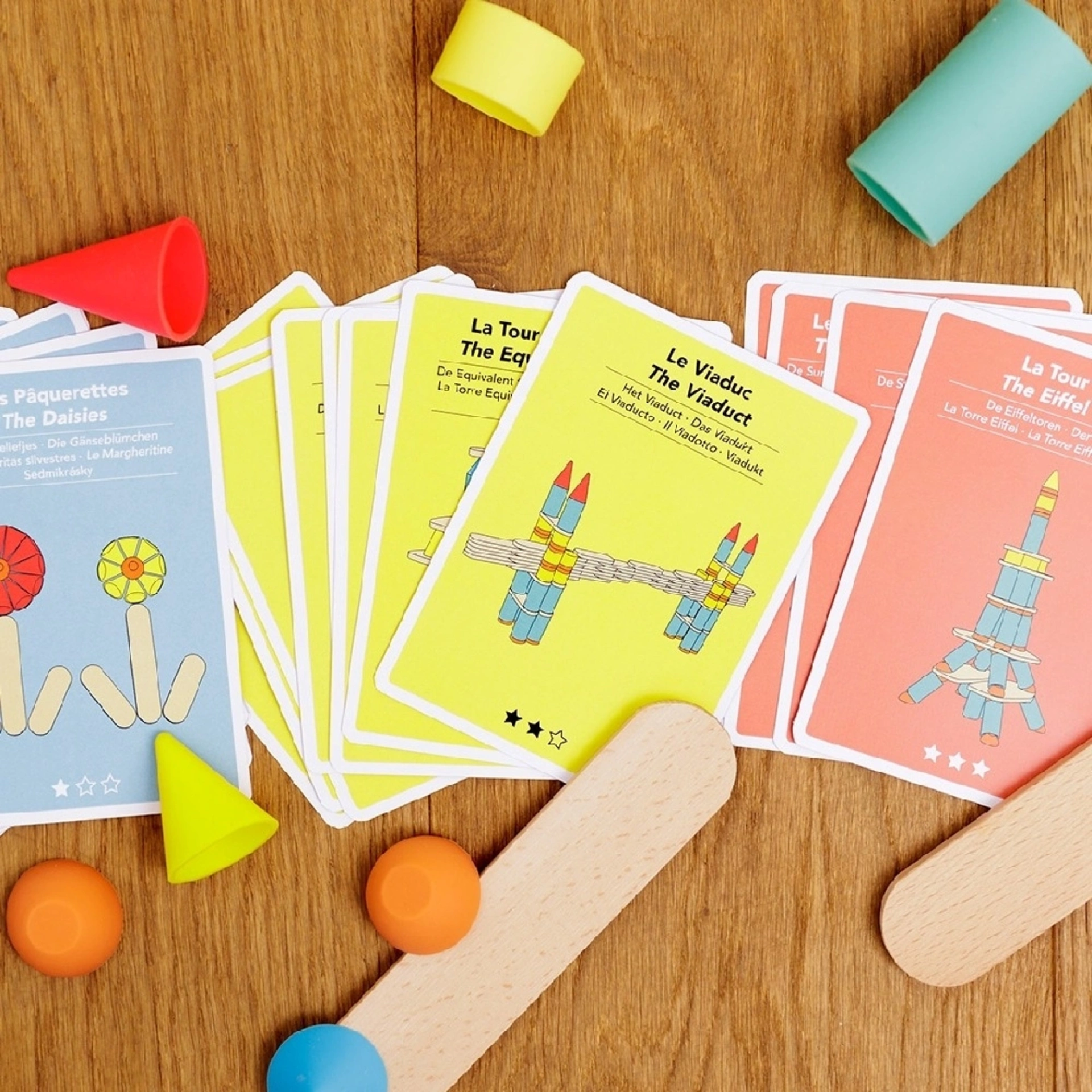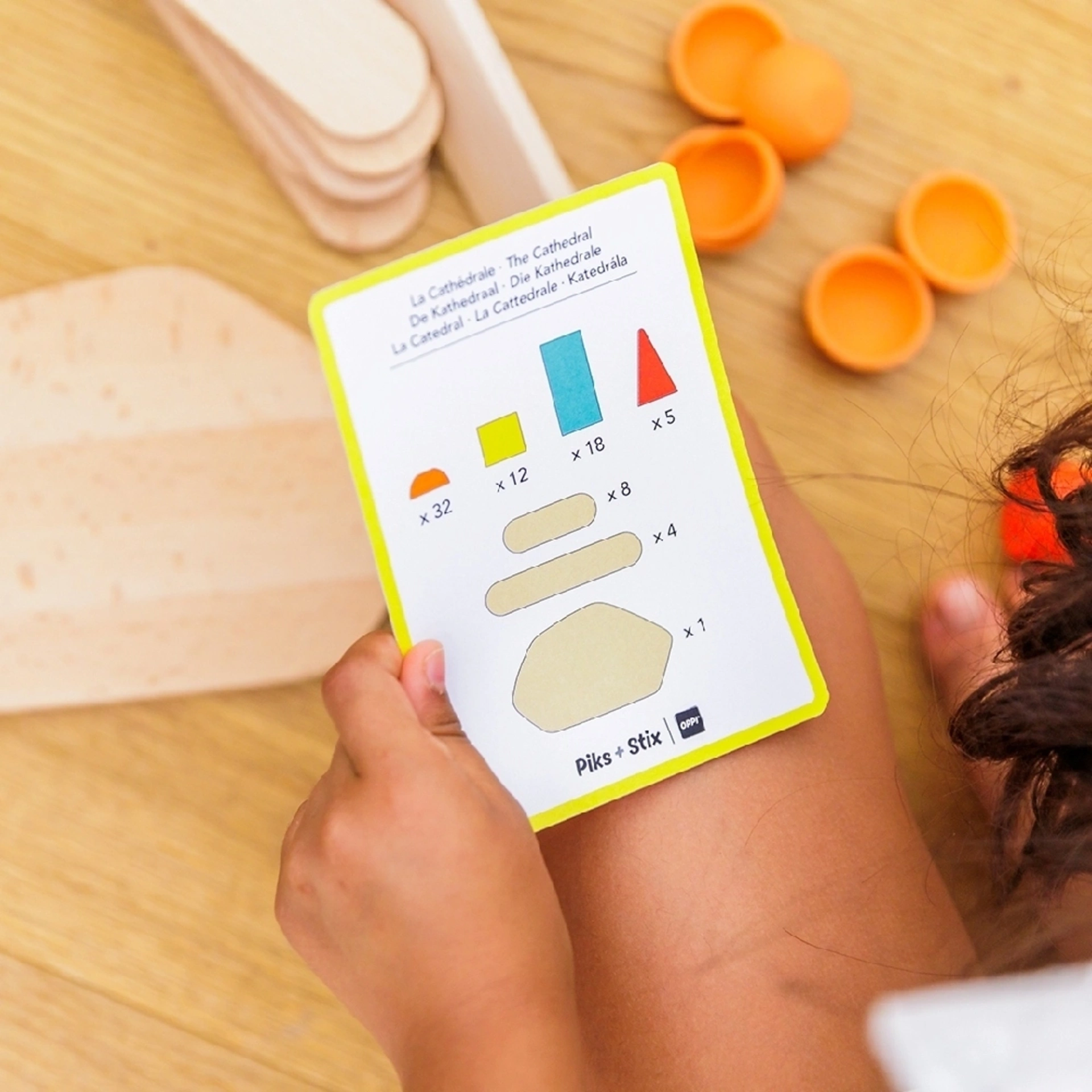 這套卡片包含 24 張挑戰卡,依難度分為三個等級:簡單、中等、困難。透過這些卡片,孩子可以發現如何結合皮克思與思提克的零件,發揮更多創意與玩法。兩款積木系列原本就設計成可以互相結合,讓建構的玩法更豐富、造型更多變(例如對應的尺寸、直徑等)。這不只是操作指引,更像是一個靈感起點,幫助孩子從有範例開始,進一步激發自己的想像力,自由發揮創造。
