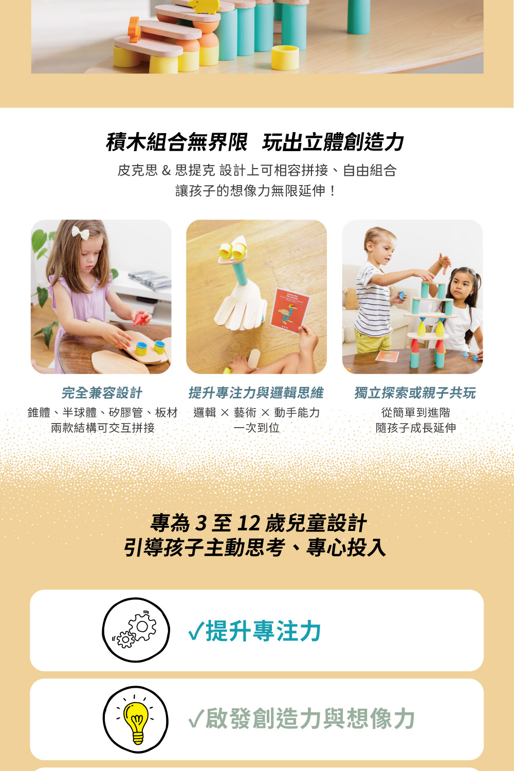 這是一款自由又模組化的建構玩具,專為啟發孩子的創造力而設計。遊戲的核心理念就是 絕對自由:盡情發想、無限重組,創造各種奇思妙想的動物、角色或建築物都沒問題!