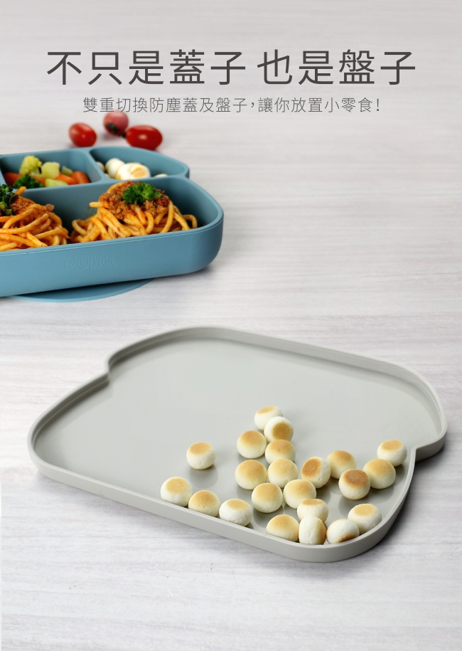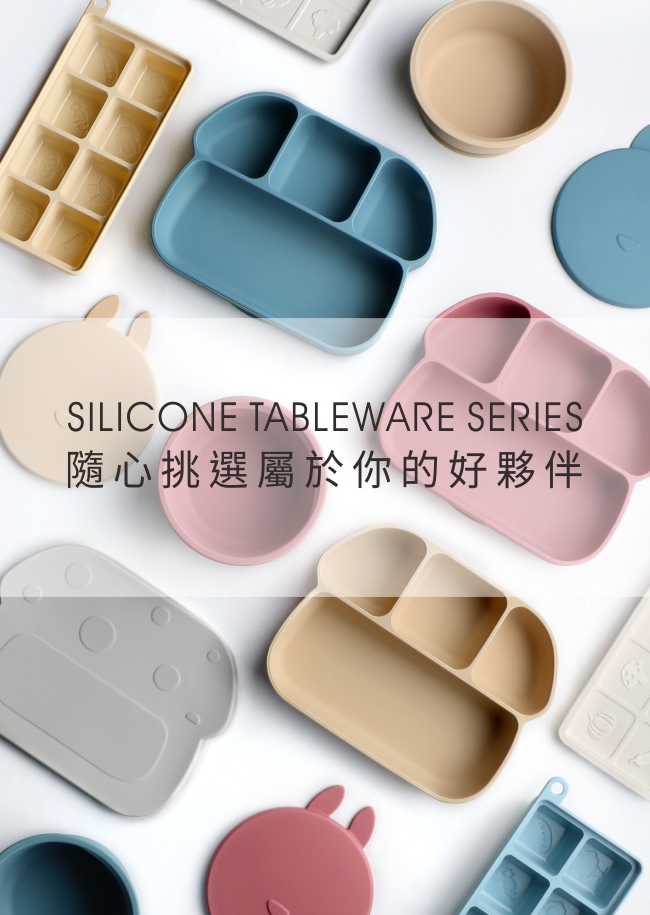 鉑金矽膠附蓋吸盤分隔餐盤*1