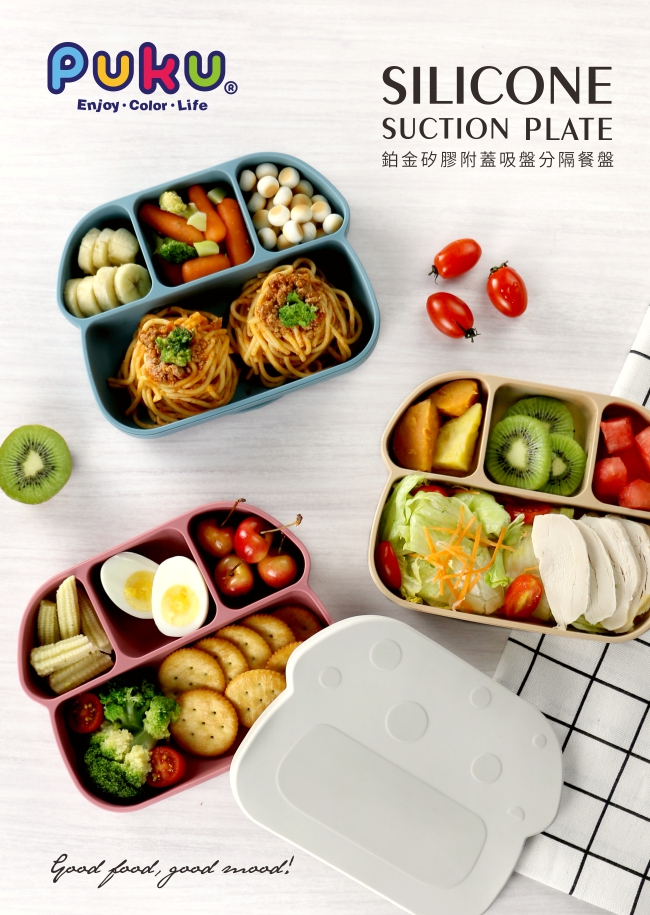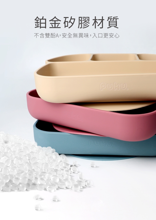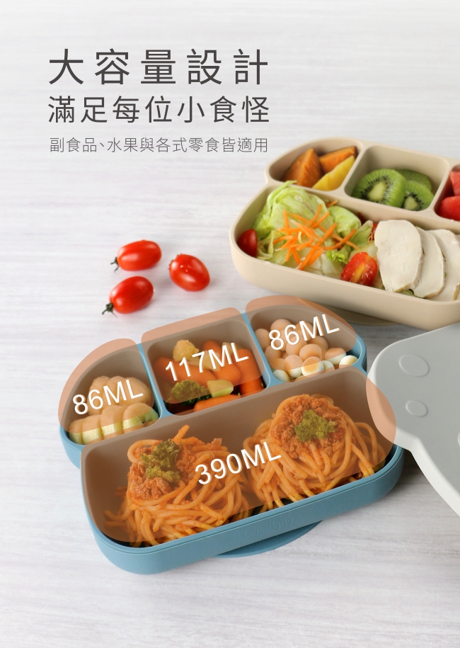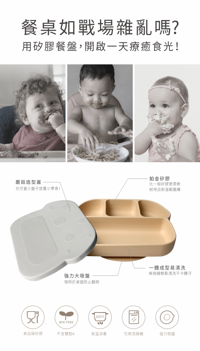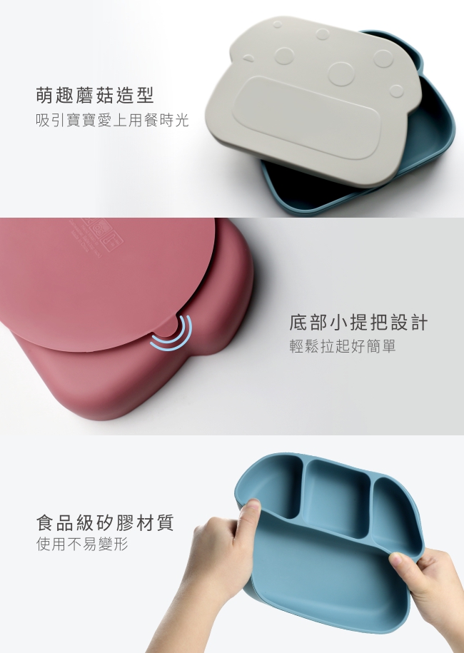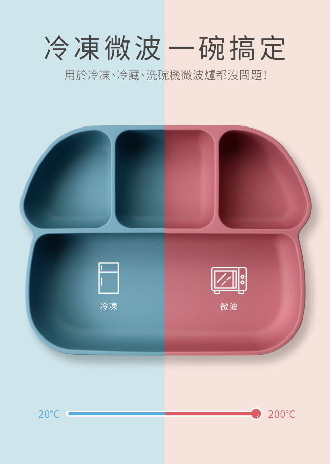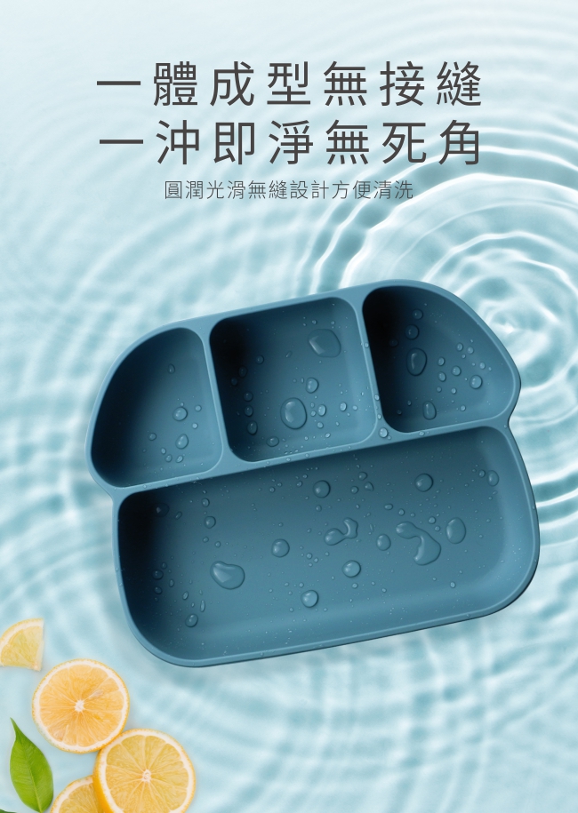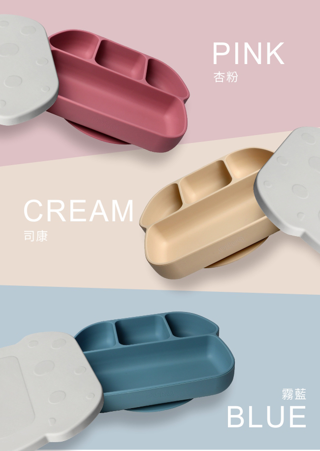 鉑金矽膠附蓋吸盤分隔餐盤*1