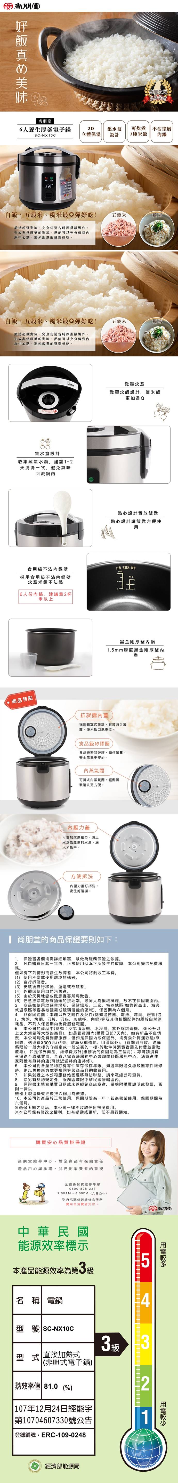 保固期一年:營業用及消耗品除外(ex:內鍋、量杯、飯匙、集水盒..等)