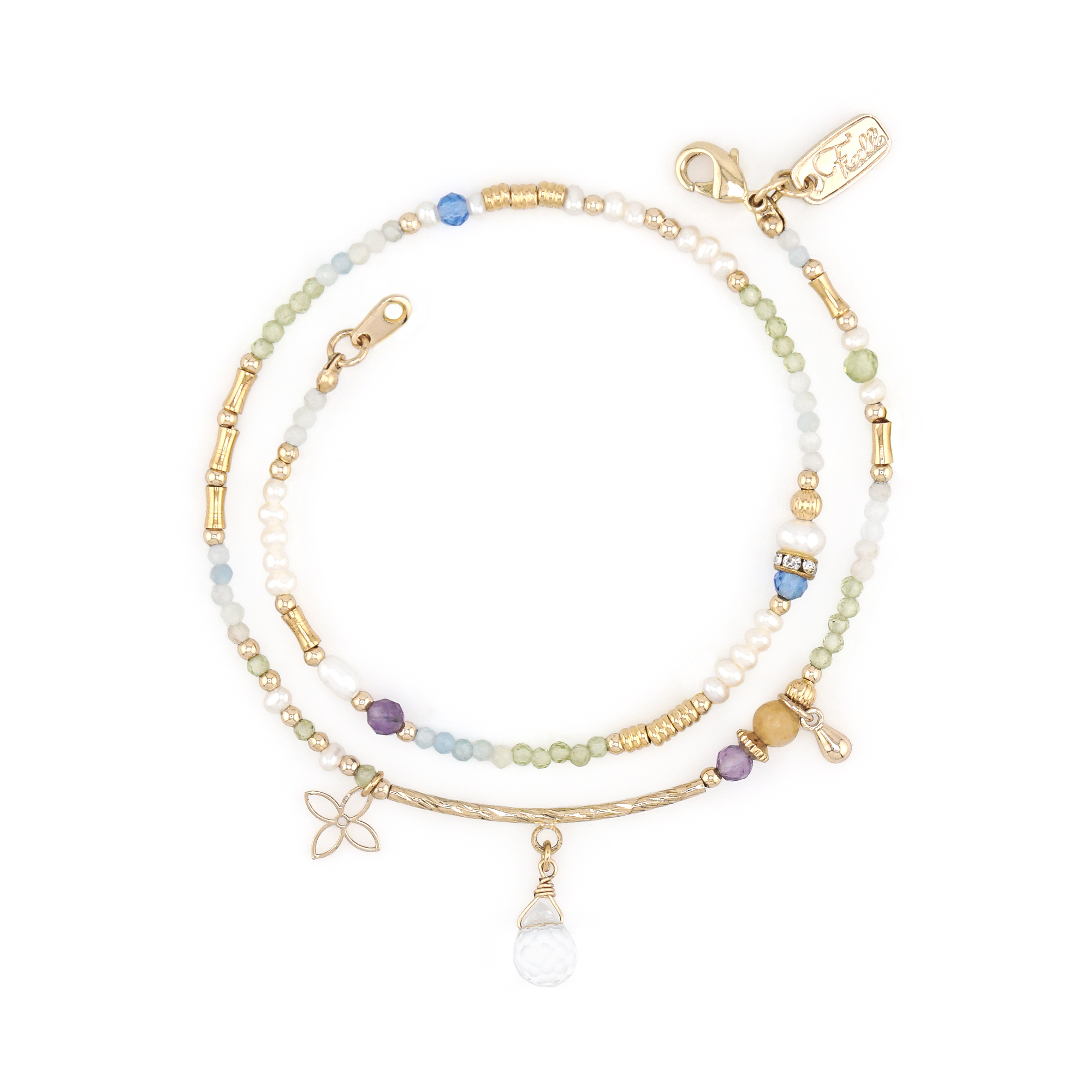 – 商品材質 Product Materials –橄欖石、摩根石、淡水珍珠、紫水晶、托帕石、黃玉、石英石、黃銅鍍18K金