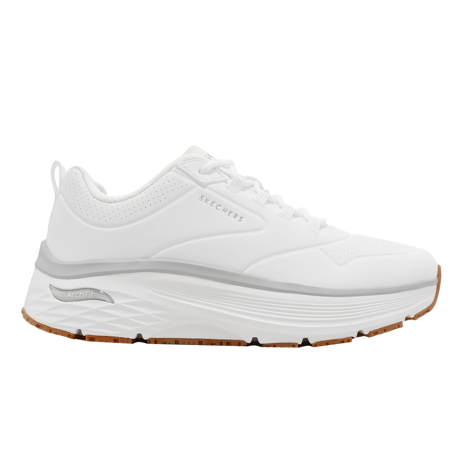品牌: SKECHERS型號: 108112-WHT品名: Max Cushioning Arch Fit SR-Adilan版型: 版型正常* 全橡膠抗濕滑大底,採用輕量耐油、止滑彈性橡膠大底,大底輪胎刻痕設計讓您於乾溼地面上,不易打滑。