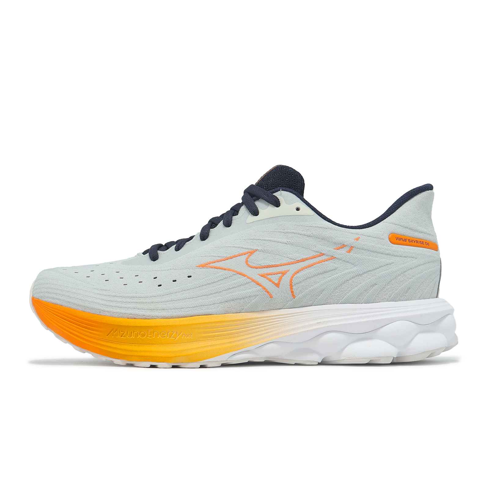 品牌: MIZUNO型號: J1GC2509-53品名: Wave Skyrise 6版型: 版型正常* 鞋面採用一片式 SMOOTH STRETCH WOVEN 平織網布構成,提供雙足穩定包覆感,鞋頭較前一代增加更多透氣孔,透氣效果提升。