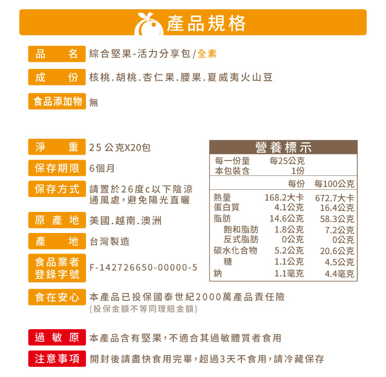 【每日優果】活力分享包禮盒-綜合堅果 25G/包(每盒20包)