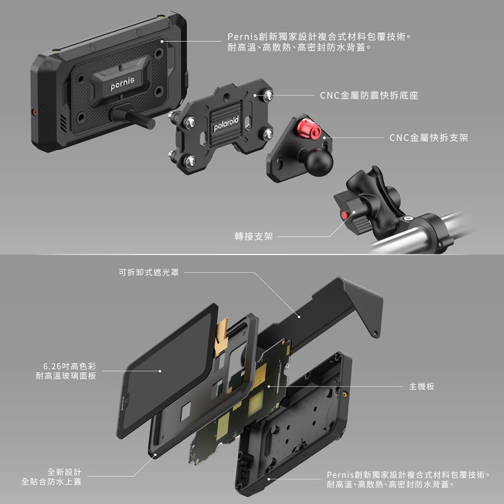 【Polaroid寶麗萊】Pernis MS700C摩托車多媒體連動主機