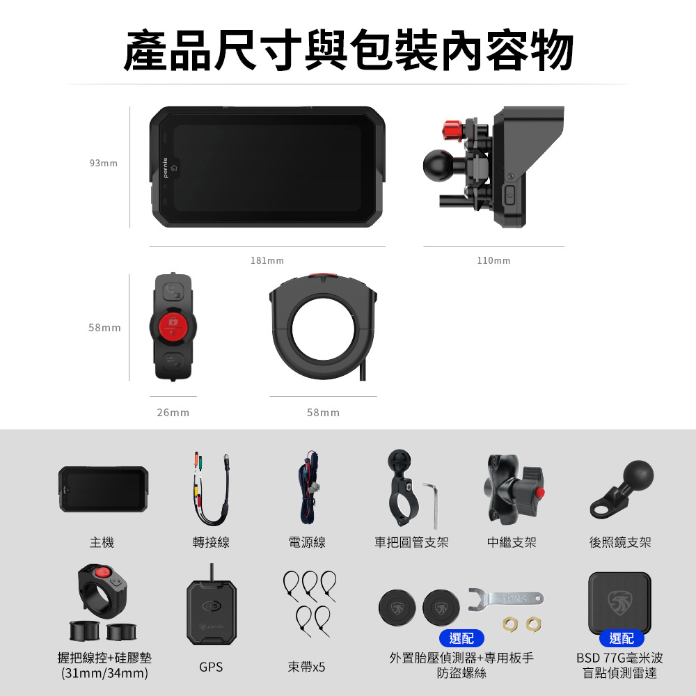 商品規格品名:【Polaroid寶麗萊】Pernis MS700C摩托車多媒體連動主機尺寸:181x93mm重量:780g ±5%NCC字號:CCAH25LP1401T5BSMI字號:R45334保固範圍:新品瑕疪(因人為因素所導致產品損壞者恕不接受保固)保固期限:保固1年產地:中國