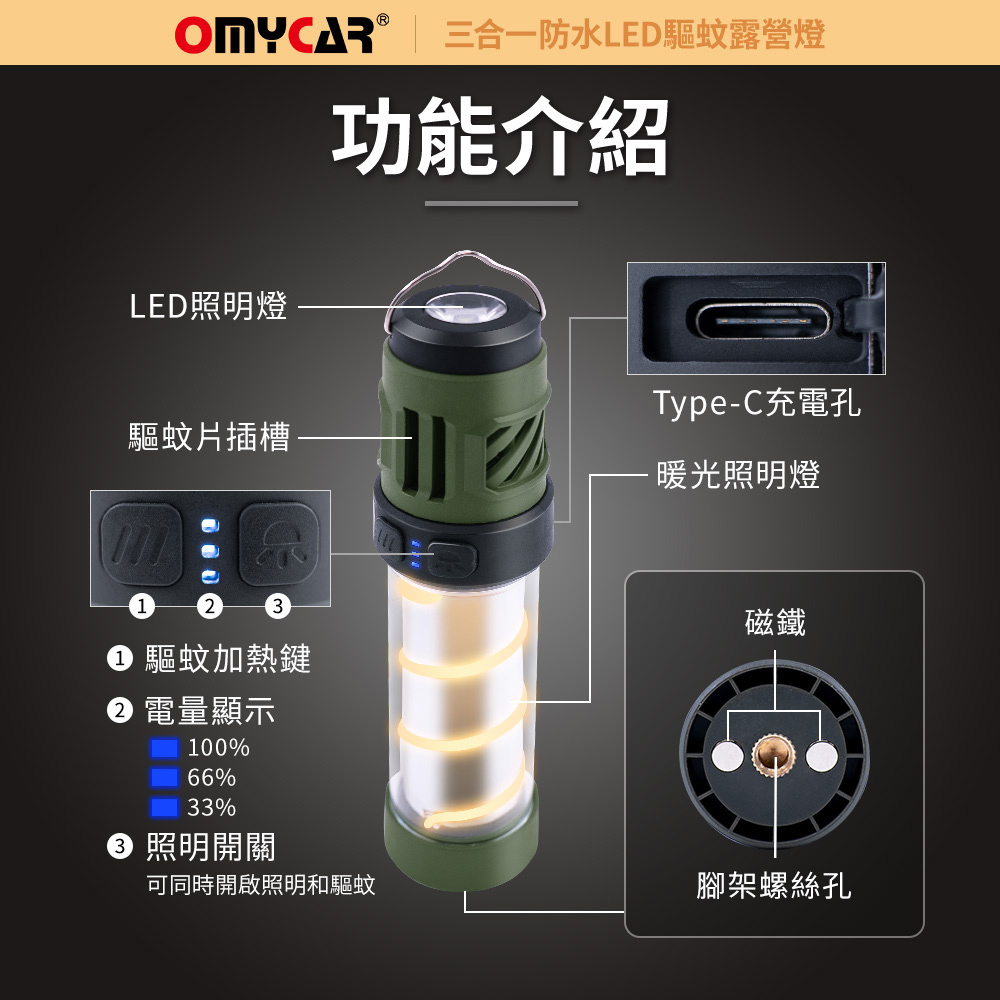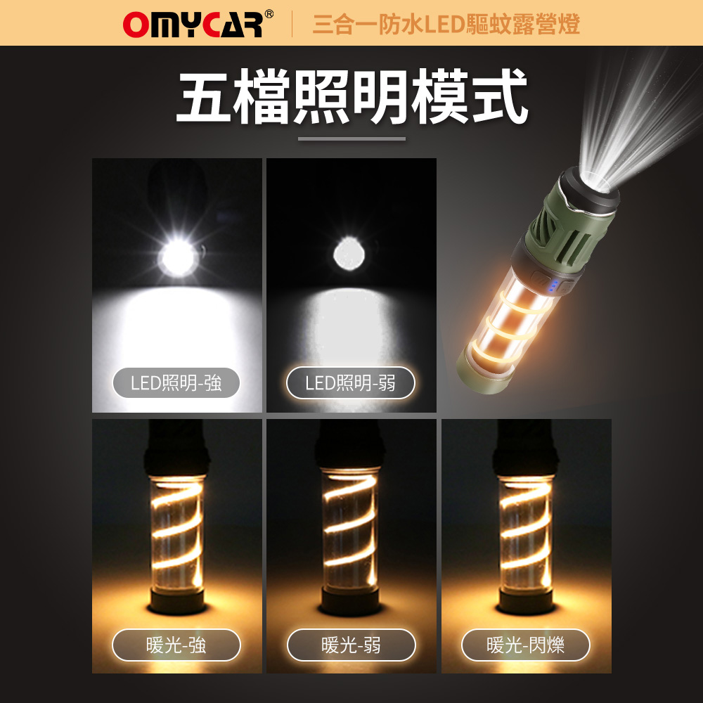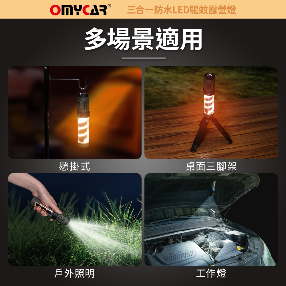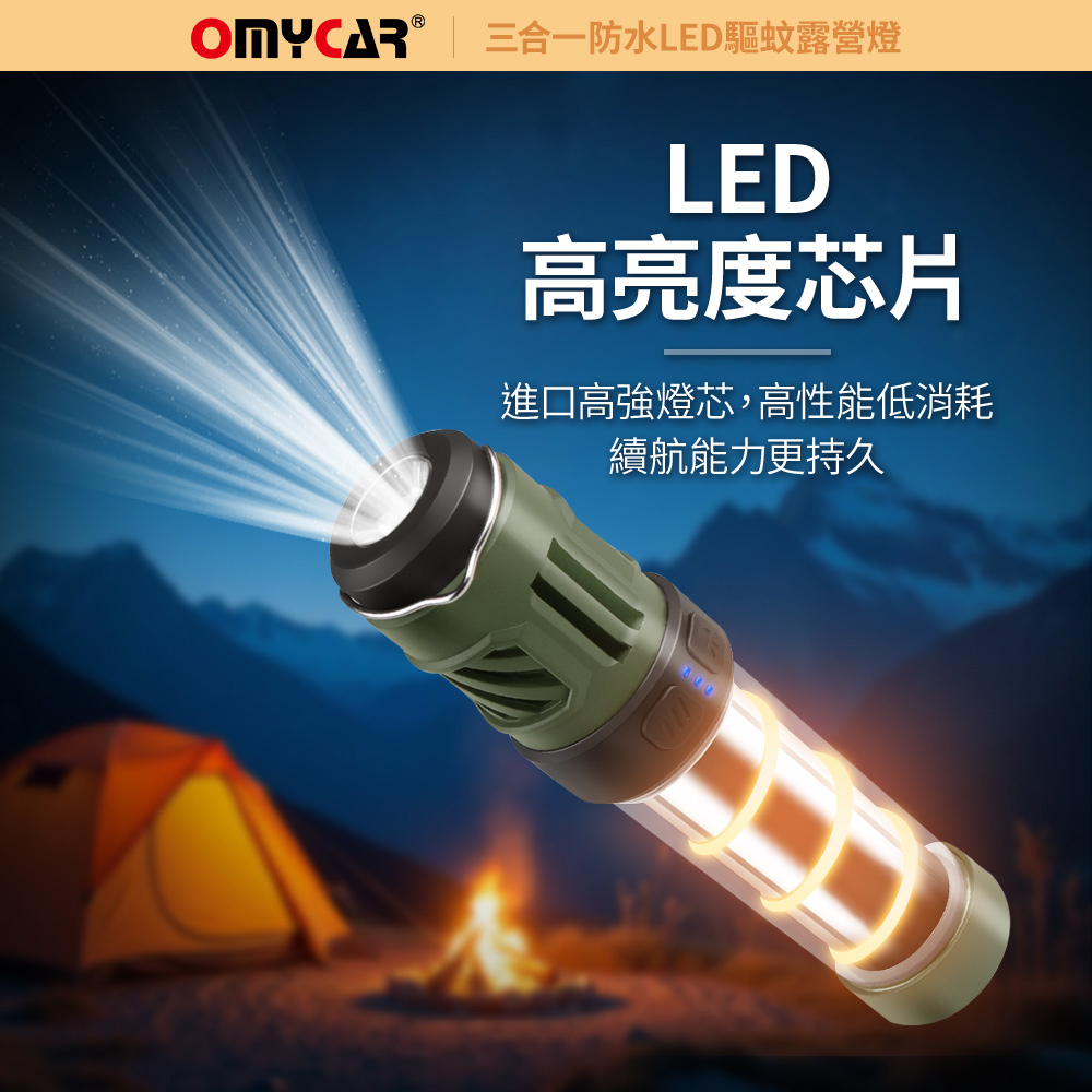 【OMyCar】三合一防水LED驅蚊露營燈 (一年保固) 探照燈 照明燈 工作燈 營燈 燈具 照明設備