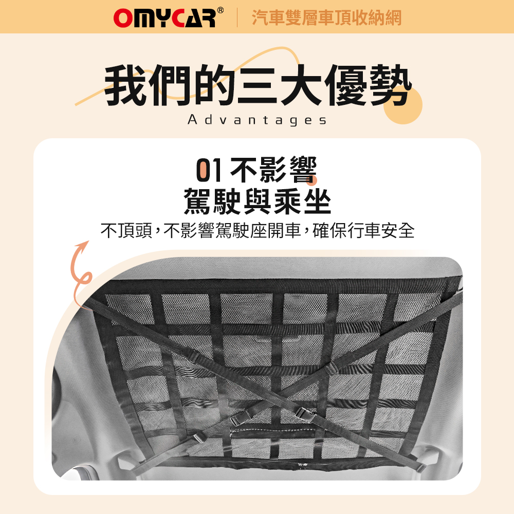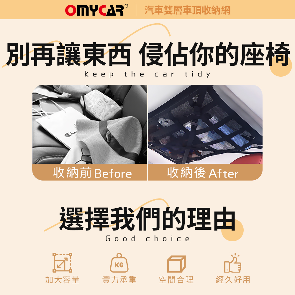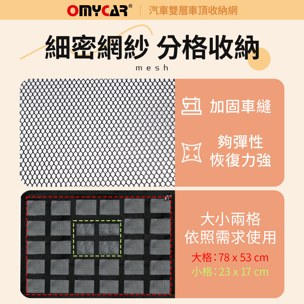 商品規格品名:【OMyCar】汽車雙層車頂收納網材質:聚酯纖維、PP、金屬尺寸:78x53cm ±5%延長帶長度:20-60cm ±5%重量:313g ±5%保固範圍:新品暇疵產地:中國(台灣監造)