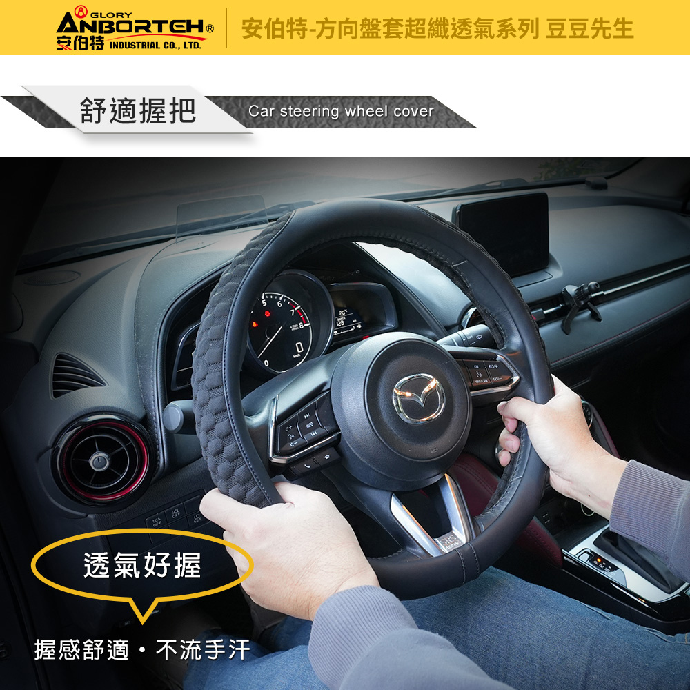 日常使用磨損,讓您的愛車老化減值【安伯特】超纖透氣方向盤套(豆豆先生)讓您避免原車方向盤損壞~恢復顏值 吸汗透氣,高韌性、高耐磨不怕打滑,握感佳
