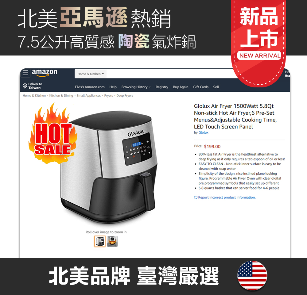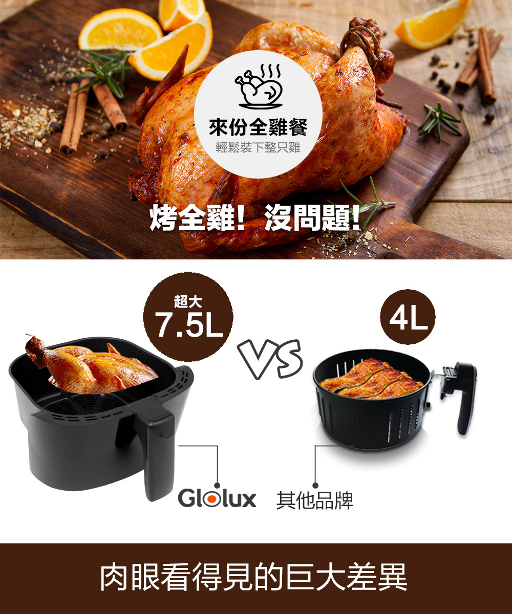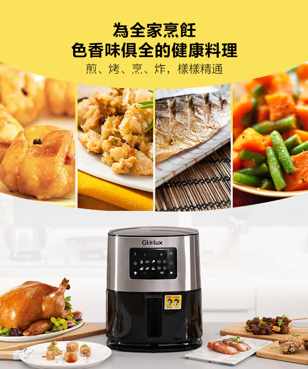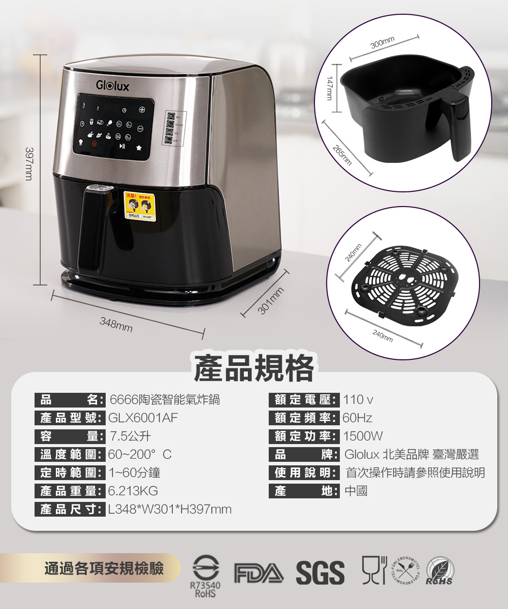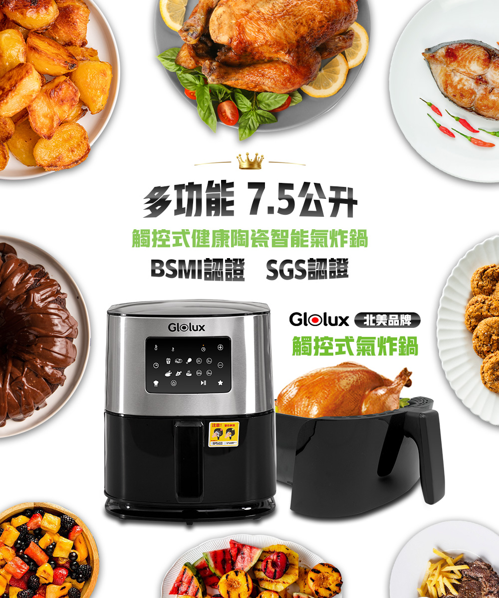 名稱:【Glolux】7.5L健康陶瓷氣炸鍋-銀色(GLX6001AF)