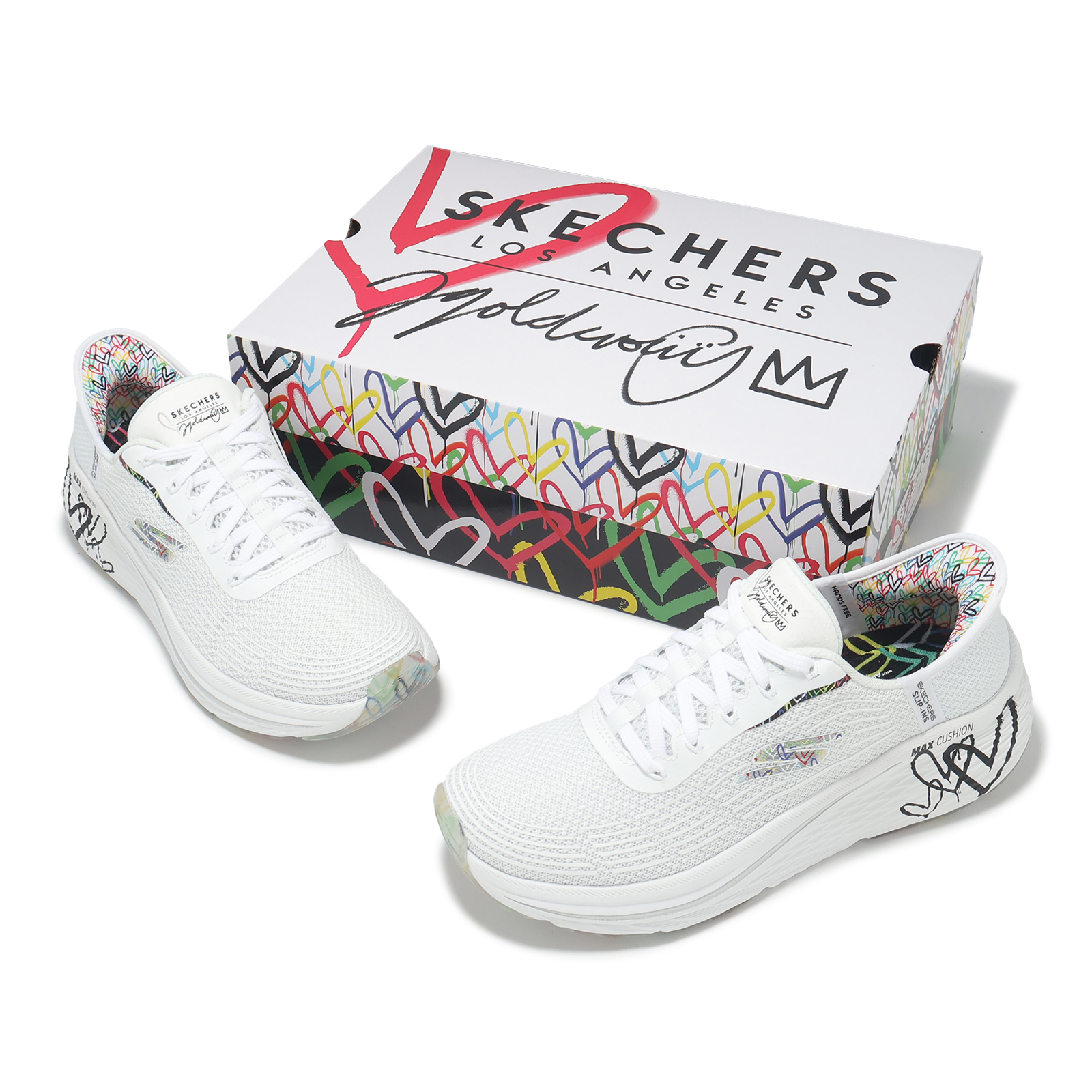 品牌: SKECHERS型號: 129637-WBK品名: Max Cushioning Elite 2.0-Osceola版型: 版型正常*1.Skechers X JAMES GOLDCROWN 國際知名藝術家聯名款,將標誌性 Lovewall 彩色愛心融入鞋款中。