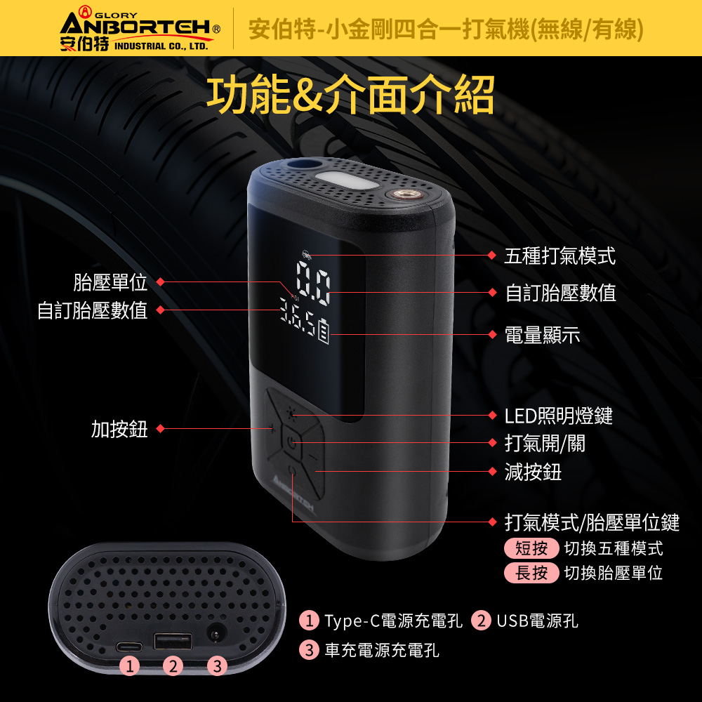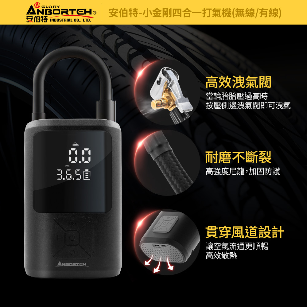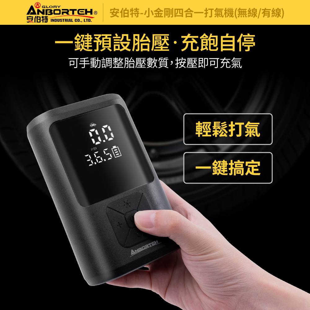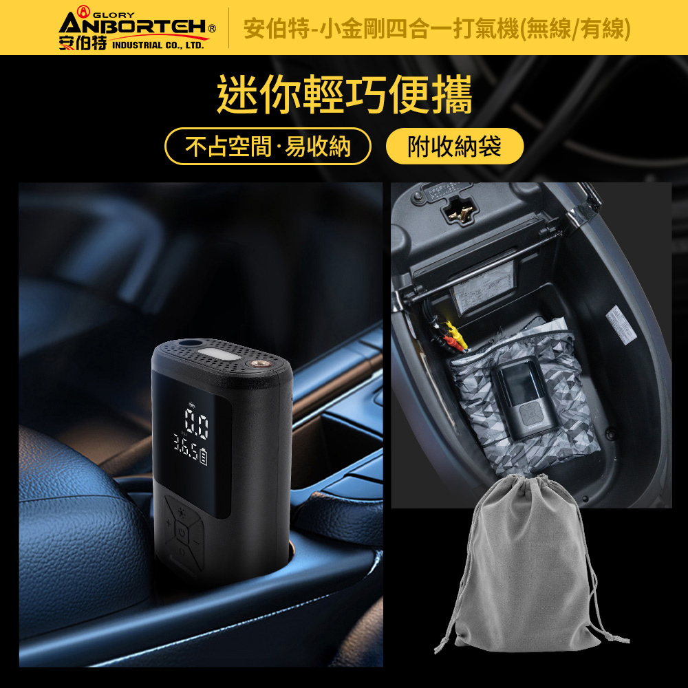 迷你小巧且輕便的【安伯特】小金剛四合一打氣機讓您隨時掌握胎壓狀況~