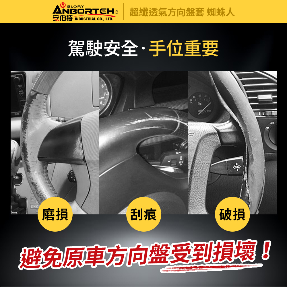 日常使用磨損,讓您的愛車老化減值【安伯特】超纖透氣方向盤套(蜘蛛人)讓您避免原車方向盤損壞~恢復顏值