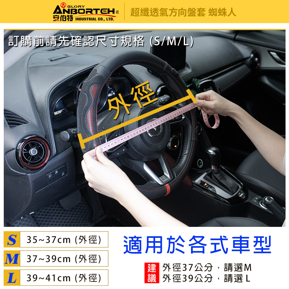 商品規格品名:【安伯特】超纖透氣方向盤套(蜘蛛人)型號:ABT-A166材質:皮革尺寸:S(35~37cm)、M(37~39cm)、L(39~41cm)重量:690g ±5%保固範圍:新品暇疵產地:中國(台灣監造)
