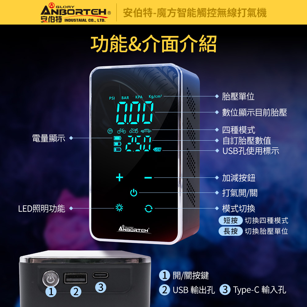 【安伯特】魔方智能觸控無線打氣機