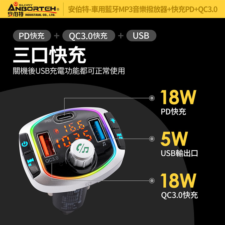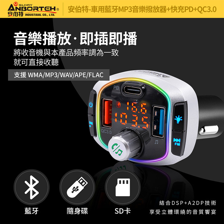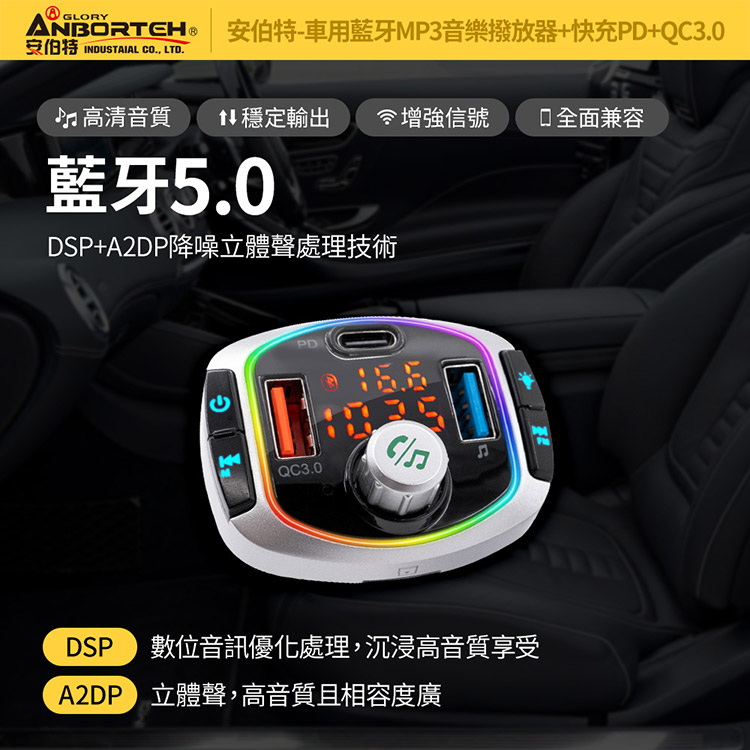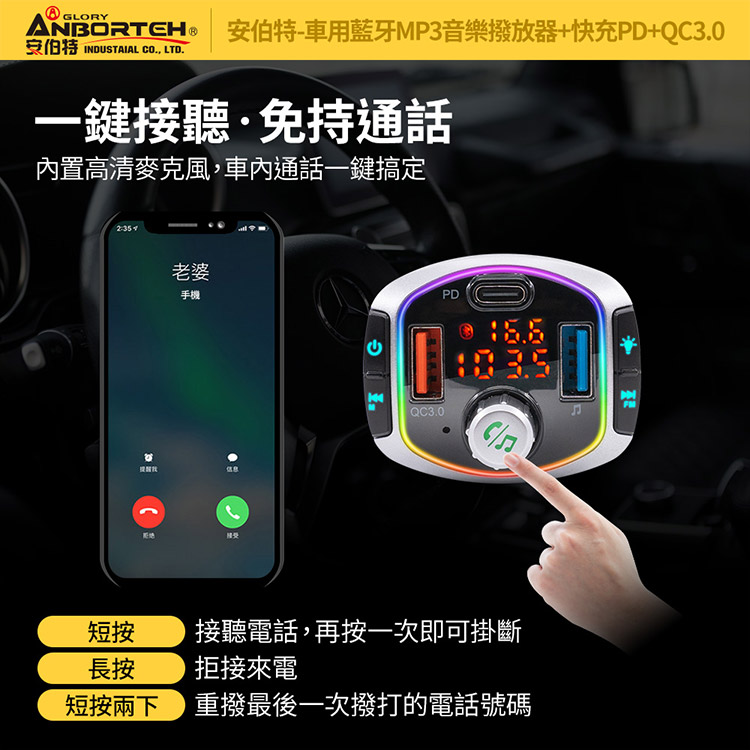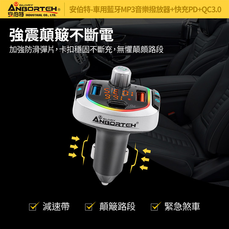 【安伯特】車用藍牙MP3音樂撥放器+快充PD+QC3.0為你的愛車擴充藍牙功能,直接連結手機,播放音樂手機連結車內音響,無損音質,單指操控便捷輕鬆藍牙5.0晶片,穩定輸出,播放音樂聲效清晰悅耳動聽