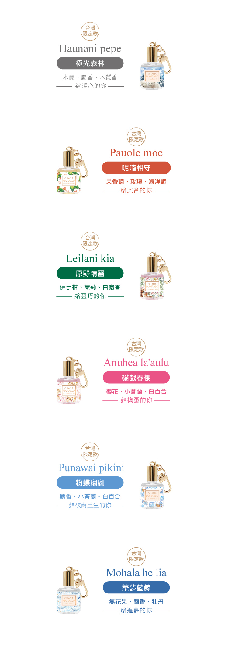 ◆商品內容 OHANA MAHAALO 十時香隨限定香水吊飾 (13款任選) x1