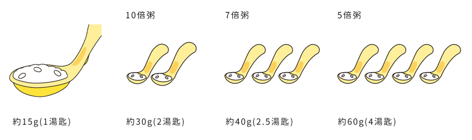 以專用湯匙舀熟飯製調理粥容器(飯量請參照下表)