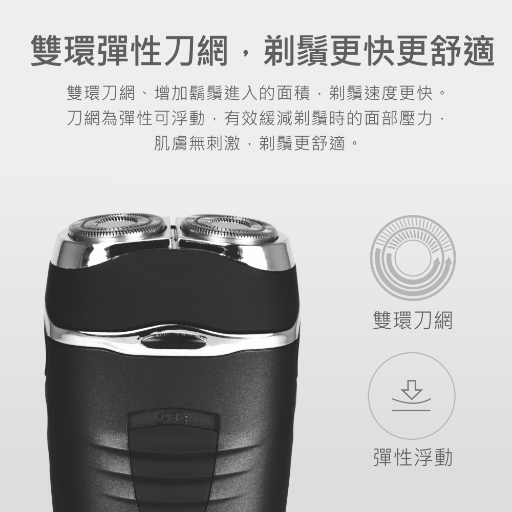 雙環極速刀網+銳利鋼刀,刮鬍乾淨俐落。