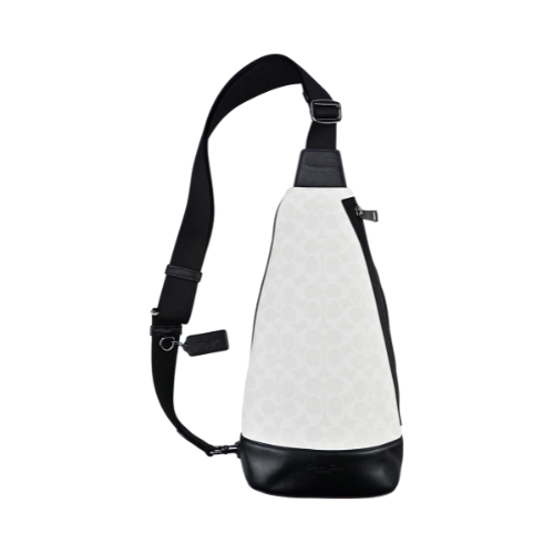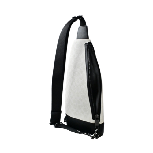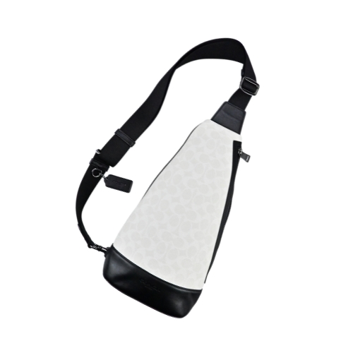 [平輸版] 【COACH】白色C LOGO PVC拼接黑色皮革直式單肩胸背斜後背男包 真品平輸 | NearMe | 線上送禮平台『獨家支援 收禮者改選禮物』