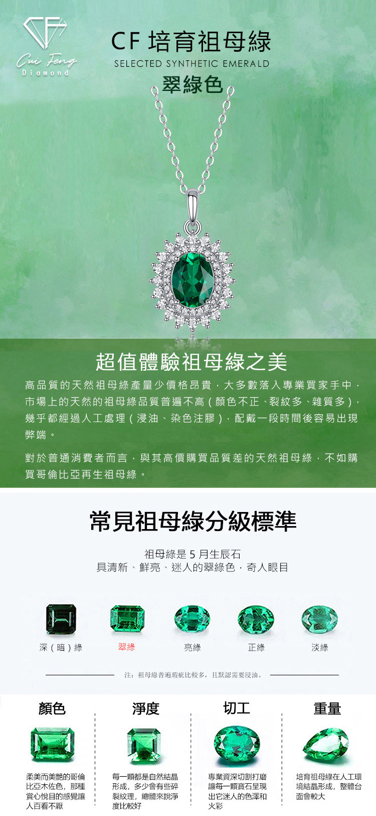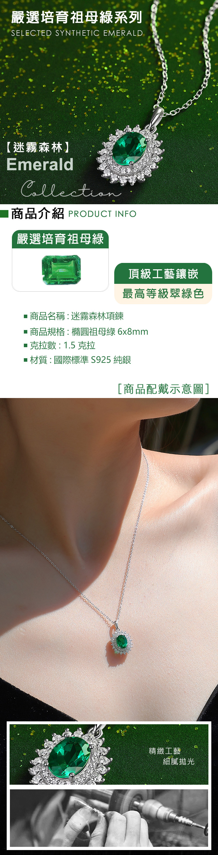 名稱:《迷霧森林》培育祖母綠1.5克拉項鍊