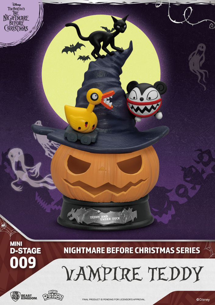 恐怖又熟悉的旋律響起,居住在萬聖鎮世界的首腦人物南瓜王傑克(Jack Skellington)出現了!這次他邀請了大家熟悉的居民們一起陪大家度過這充滿驚喜冬季節日,野獸國以旗下著名MDS(Mini D-Stage)系列,以最代表性的萬聖節南瓜造型地台搭配不同形狀設計與配色來呈現每位大家所熟悉的萬聖鎮的居民,包含經典服裝與聖誕老服裝版本的「傑克」在內,還有一路幫助他挽救聖誕節的「布娃娃莎莉」(Sally)、住在狗屋忠心耿耿的小夥伴零零(Zero)、惡名昭彰的大壞蛋烏基布基(Oogie Boogie)、以及他調皮小弟吸血鬼泰迪與亡靈鴨(Vampire Teddy with Duck),超傳神的表情配上活潑又生動姿勢,就同電影中的萬聖鎮居民正在為你準備今年的冬季節日來到!除此之外還有隱藏版聖誕節日聖誕老公公傑克版款,假扮聖誕老公公的傑克正準備進入你家的煙囪偷偷要送禮物給你喔!