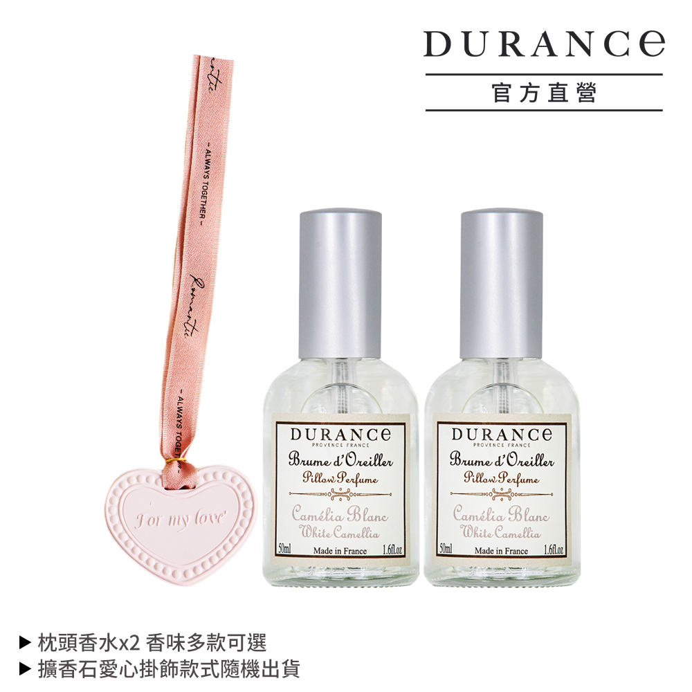 規格:1.DURANCE朵昂思 枕頭香水(50ml)X2-可任選2.O'Pretty 歐沛媞 室內/車用 香氛擴香石愛心掛飾(隨機出貨)