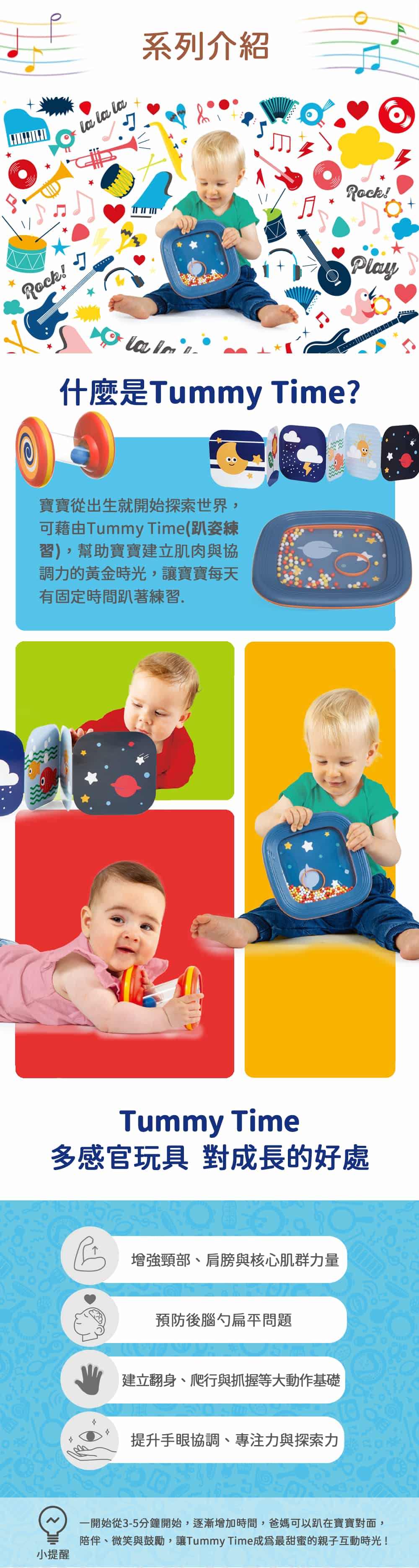 【關於 Tummy Time 趴玩時間】Tummy Time 是寶寶成長過程中非常重要的練習,有助於訓練頸部、肩膀與背部肌肉,為翻身、爬行等動作打下良好基礎,同時也能預防長時間仰躺造成的頭型扁平問題。