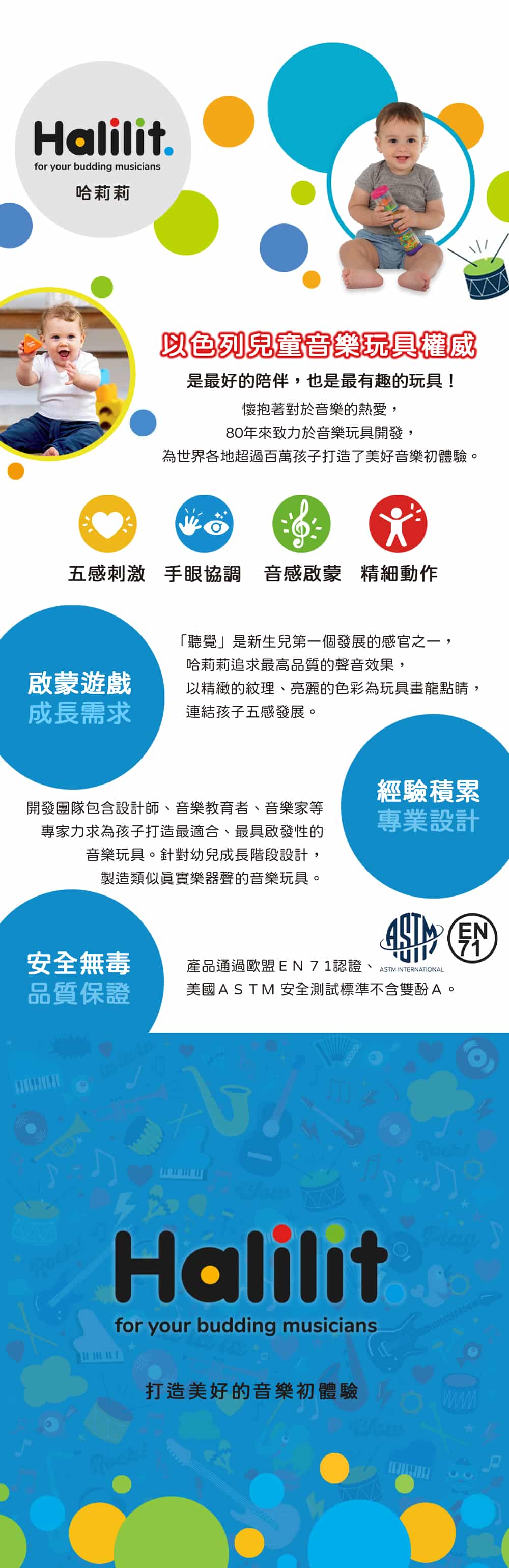 透過多樣化的動作、色彩與聲音,促進寶寶的運動、感官與視覺發展。