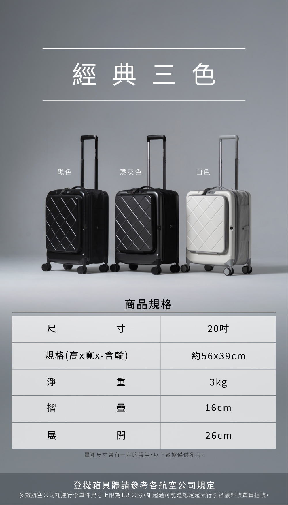 【BIGGER】20吋菱格紋前開摺疊箱 (共三色)