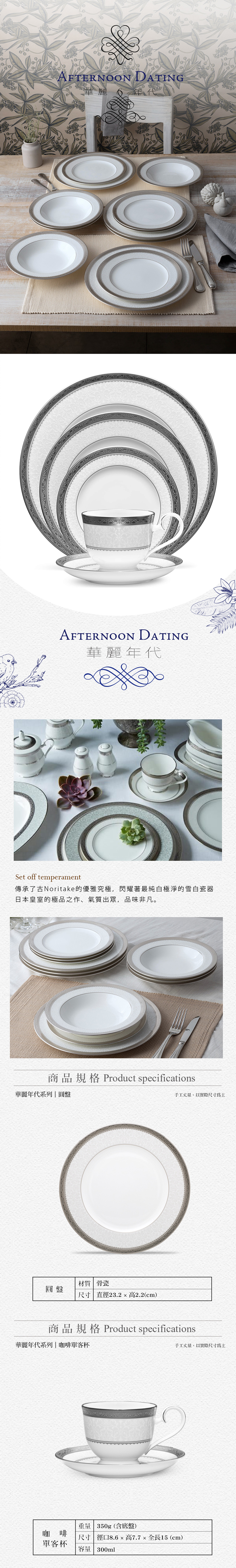 名稱:【日本Noritake】華麗年代銀邊獨享午茶禮盒組(單客咖啡杯+點心圓盤)