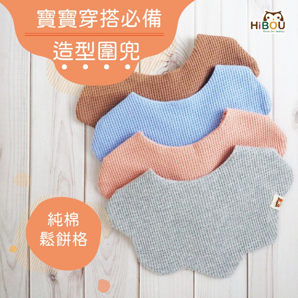 【喜福HiBOU】純棉鬆餅格∥花朵造型吸水圍兜兜2件組|鬆餅棉布 | NearMe | 線上送禮平台『獨家支援 收禮者改選禮物』