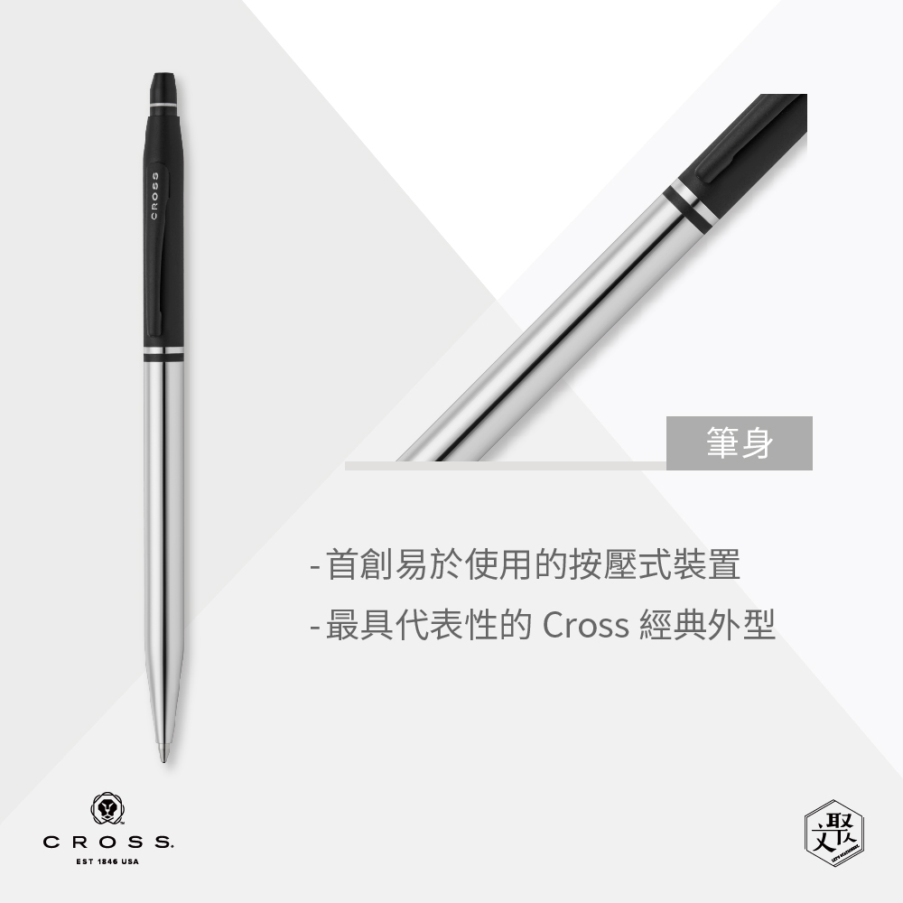名稱:【CROSS】立卡禮服系列 亮鉻/黑色原子筆(原廠正貨)
