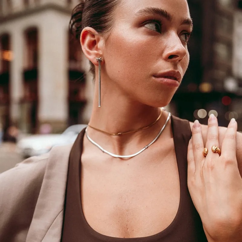 結合蛇鍊貼合肌膚的高舒適度特質。單戴俐落簡約,