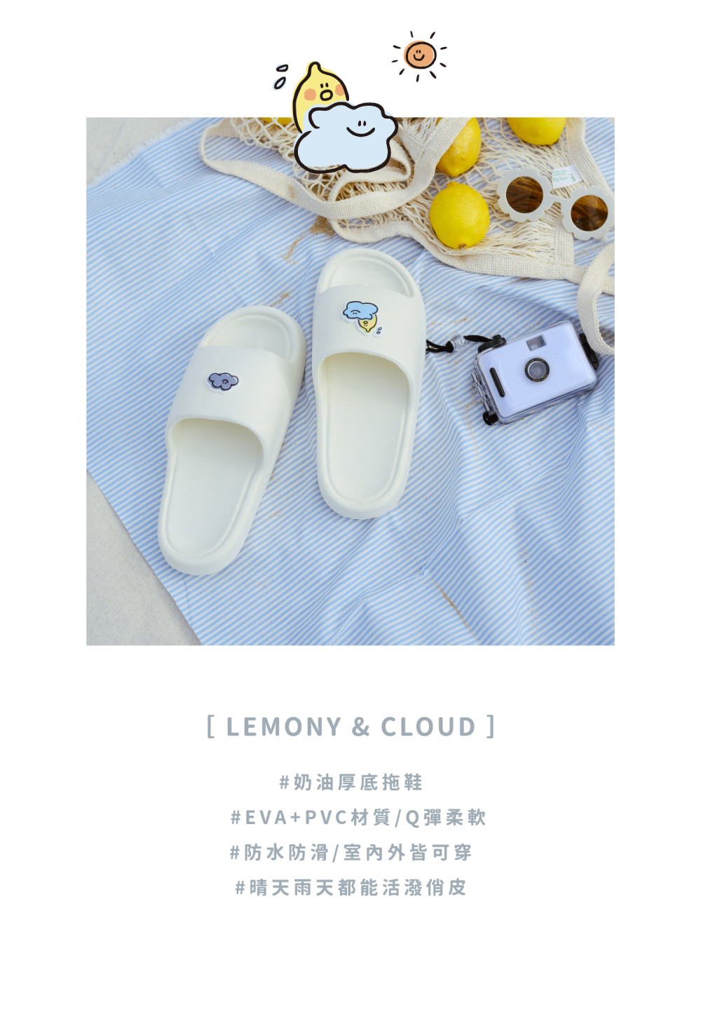 「不論晴雨,都要帶你一直往前走。」◆ Second Morning 正版授權◆ EVA+PVC材質,Q彈柔軟◆ 防水防滑,室內外皆可穿◆ 左右不同圖案,活潑俏皮