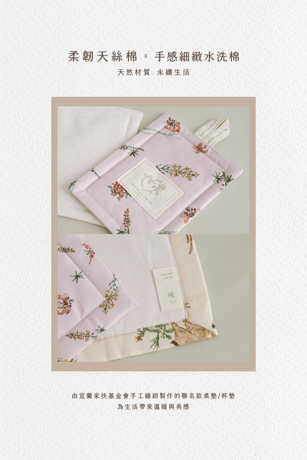 ※本商品圖案排列僅供示意,實際花紋排列依製作時裁切的布料為主,不會100%與照片相同。「小鹿與百合齊頌,春日的圓舞曲。」◆ 天絲棉+水洗棉拼接材質,吸濕透氣、柔軟耐用◆ 用途多元,可當桌墊、杯墊、餐墊、飾品墊使用◆ 桌墊尺寸:37*24cm / 杯墊尺寸:13*18cm