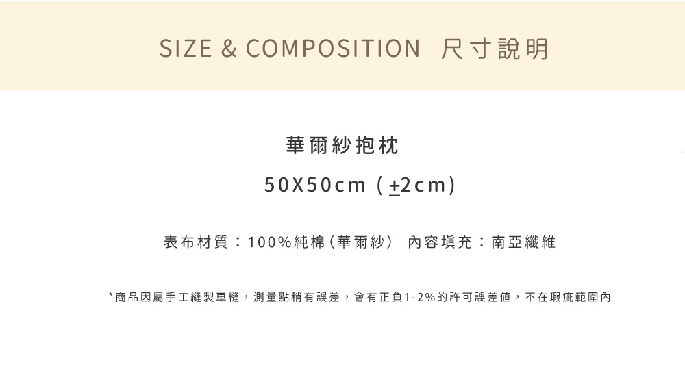 「優雅、知性、童趣、可愛,我全都要。」◆ 100% Cotton 60支長纖棉製成,輕透柔軟◆ Made in Taiwan 台灣製造,品質安心◆ 尺寸50x50cm,房間、沙發都適用